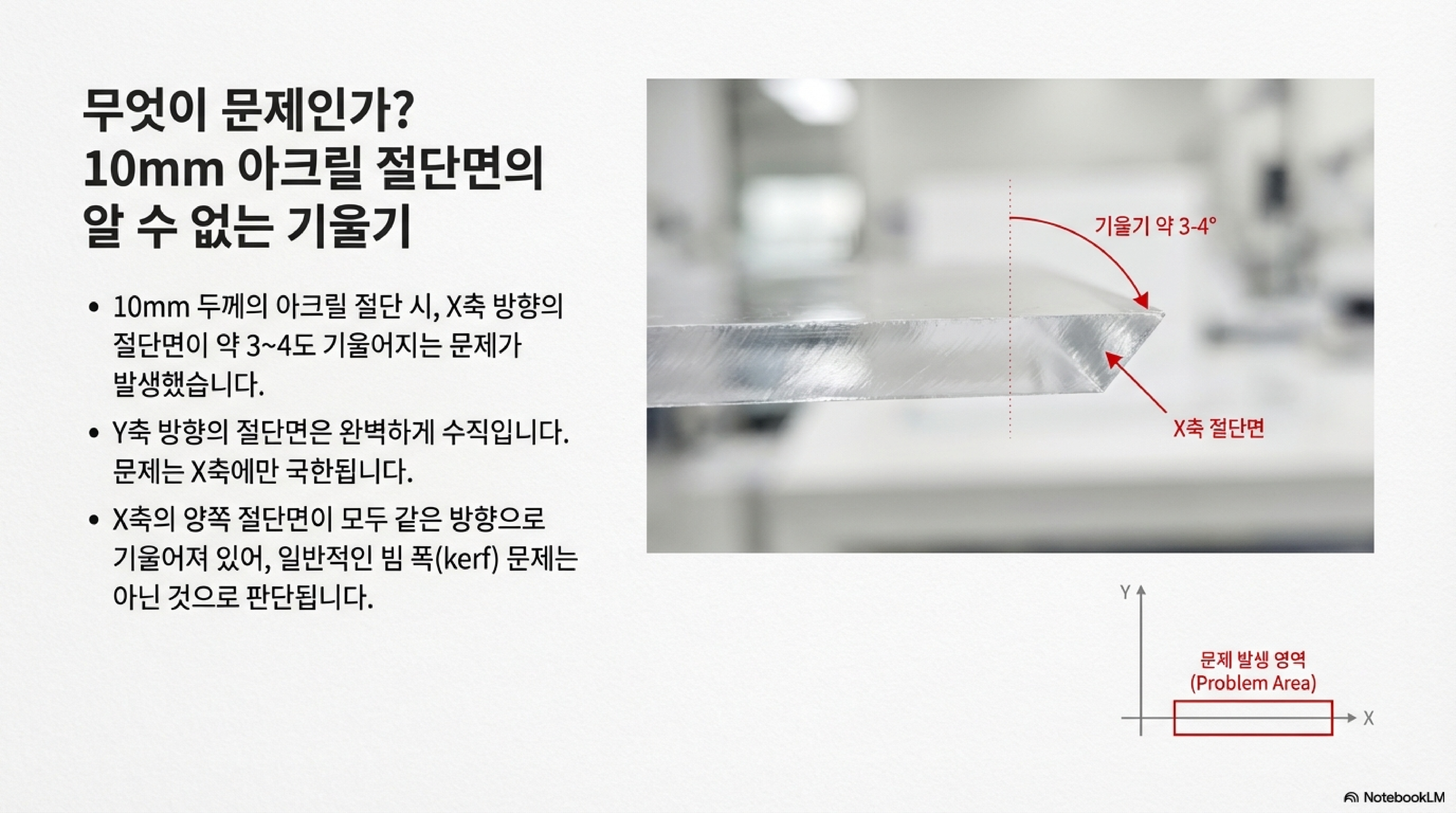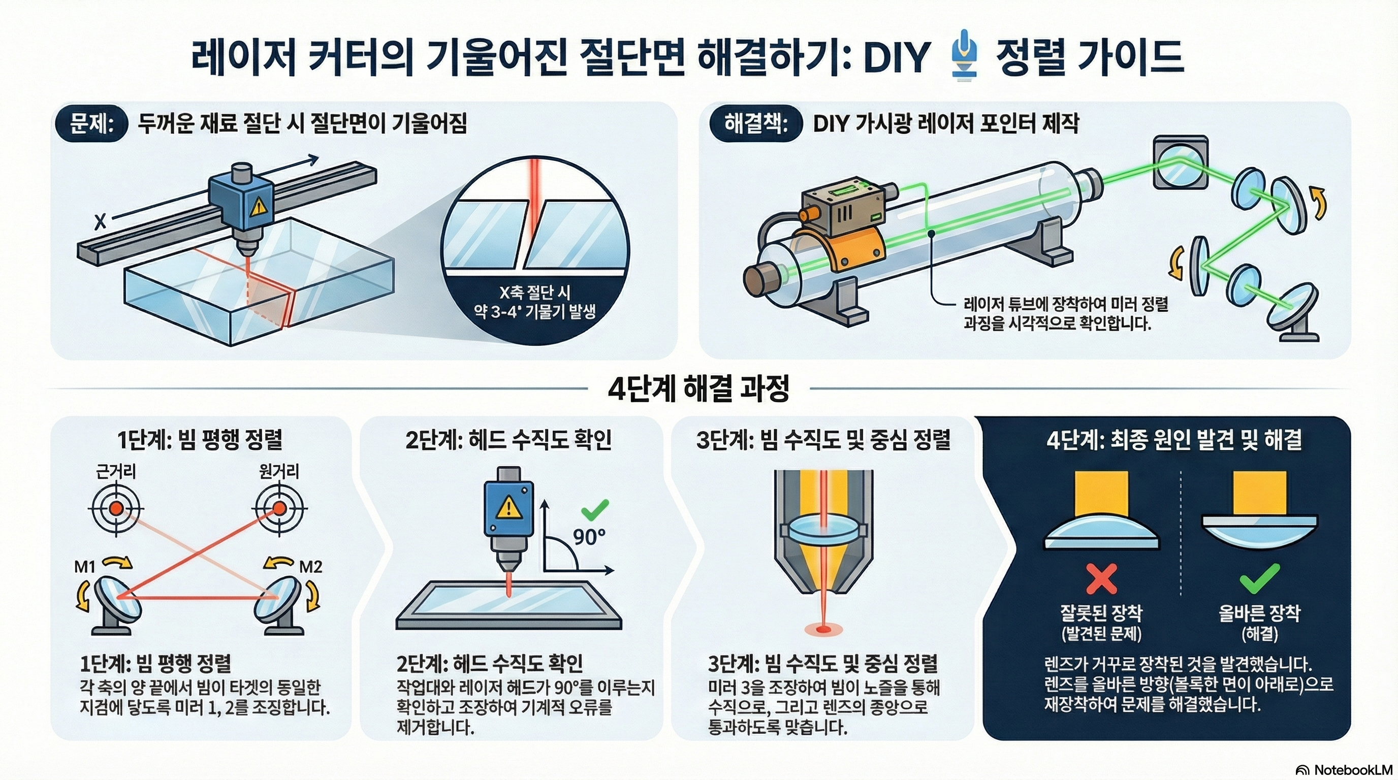 진짜 원인은 훨씬 더 간단하고 기계적인 것이었습니다. 바로 레이저 헤드 전체가 작업 테이블에 대해 물리적으로 직각이 아니었던 것입니다.