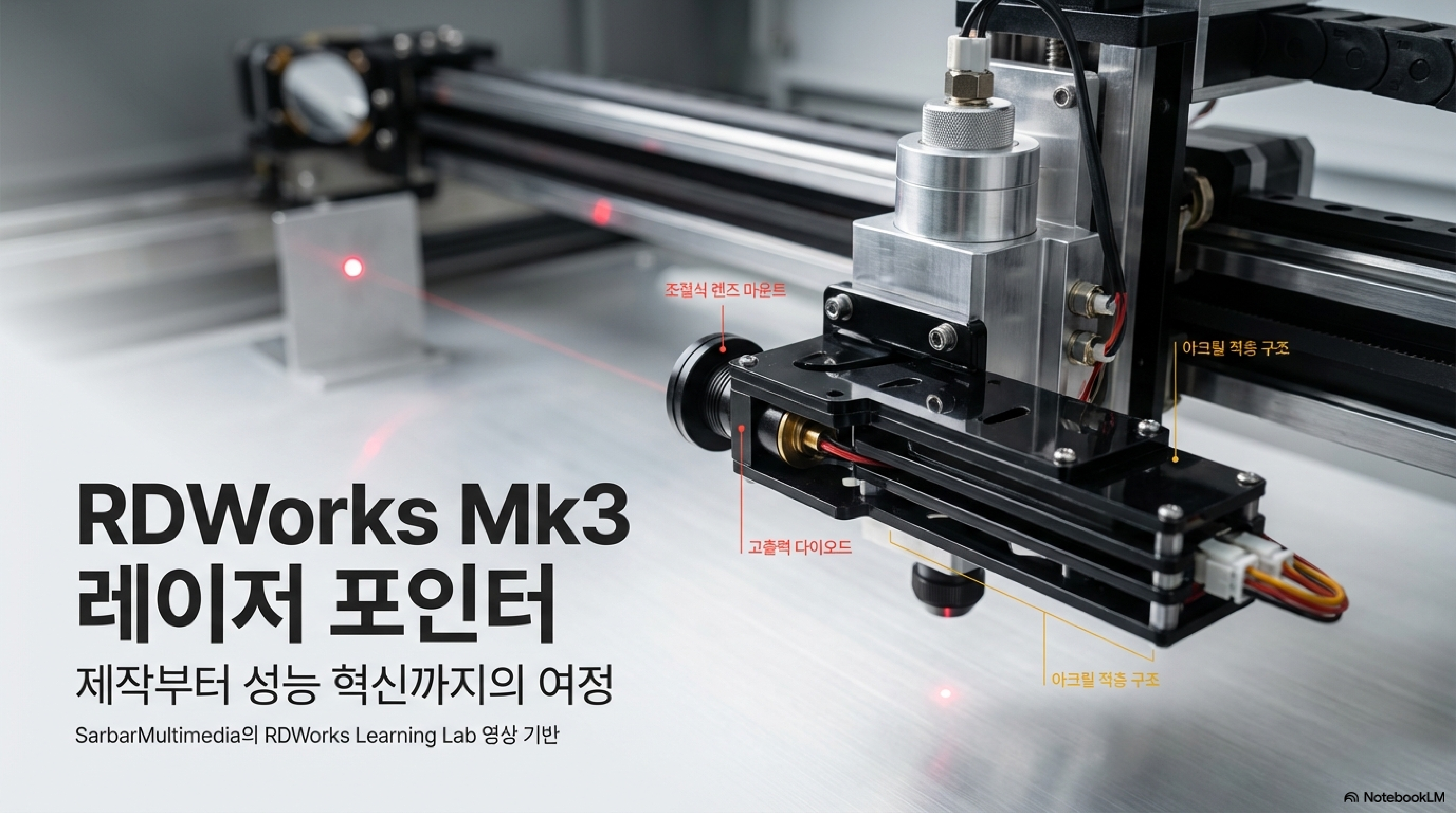 이 레이저 포인터 도구의 진정한 아름다움은 그 설계 철학에 있습니다. 값비싼 선반이나 밀링 머신 없이, 오직 레이저 커터로 자른 부품과 쉽게 구할 수 있는 부품들로만 만들어졌습니다.