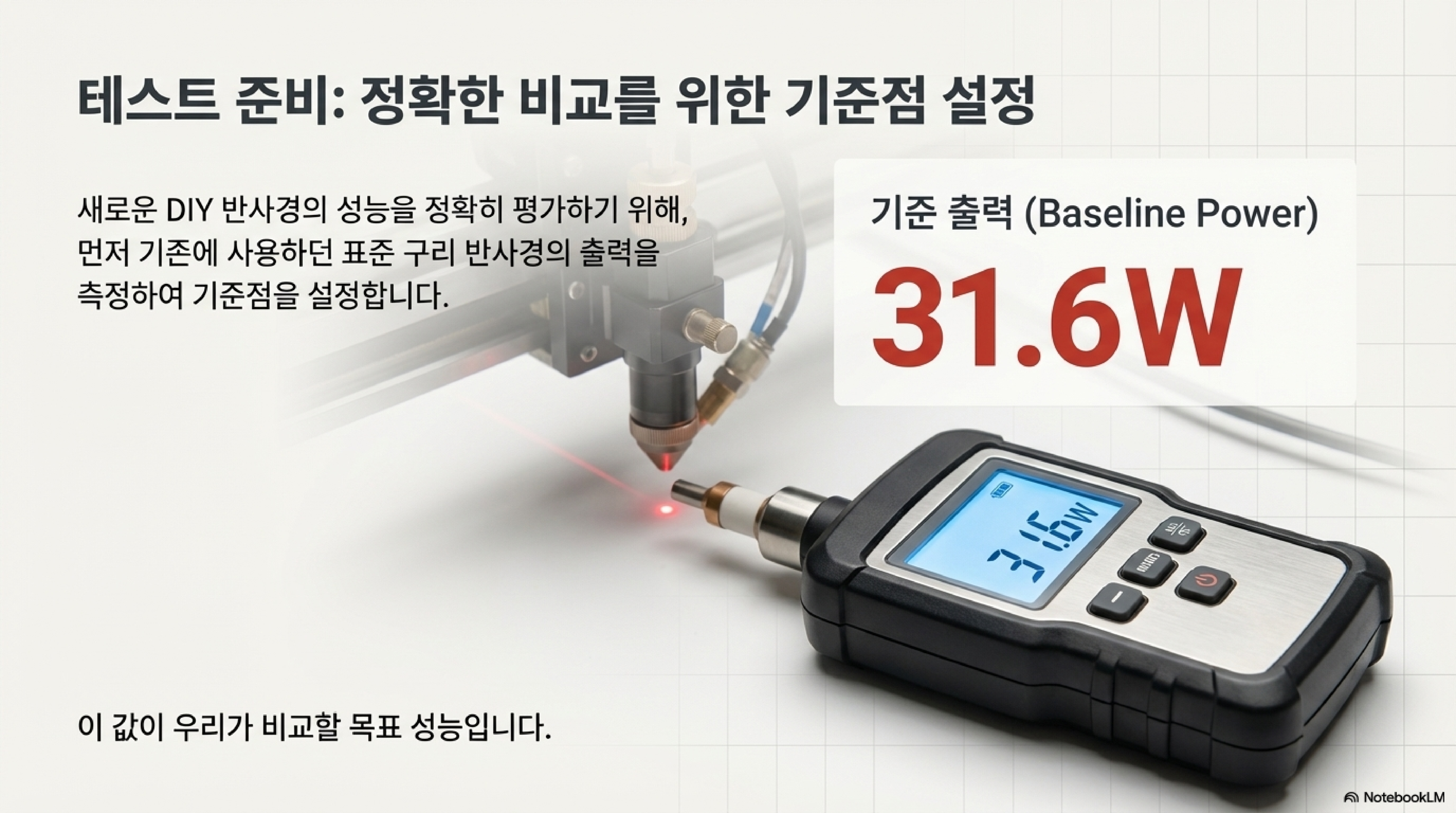 하지만 진짜 성능은 테스트에서 드러났습니다. 기존의 구리 거울이 31.6와트의 출력을 기록한 반면, 야심 차게 제작한 하드 디스크 거울은 28.8와트에 그쳤습니다. 이는 정확히 2.8와트, 거의 10%에 달하는 출력 손실이었습니다. 이 예상 밖의 결과는 우리에게 아주 중요한 교훈을 주었습니다.