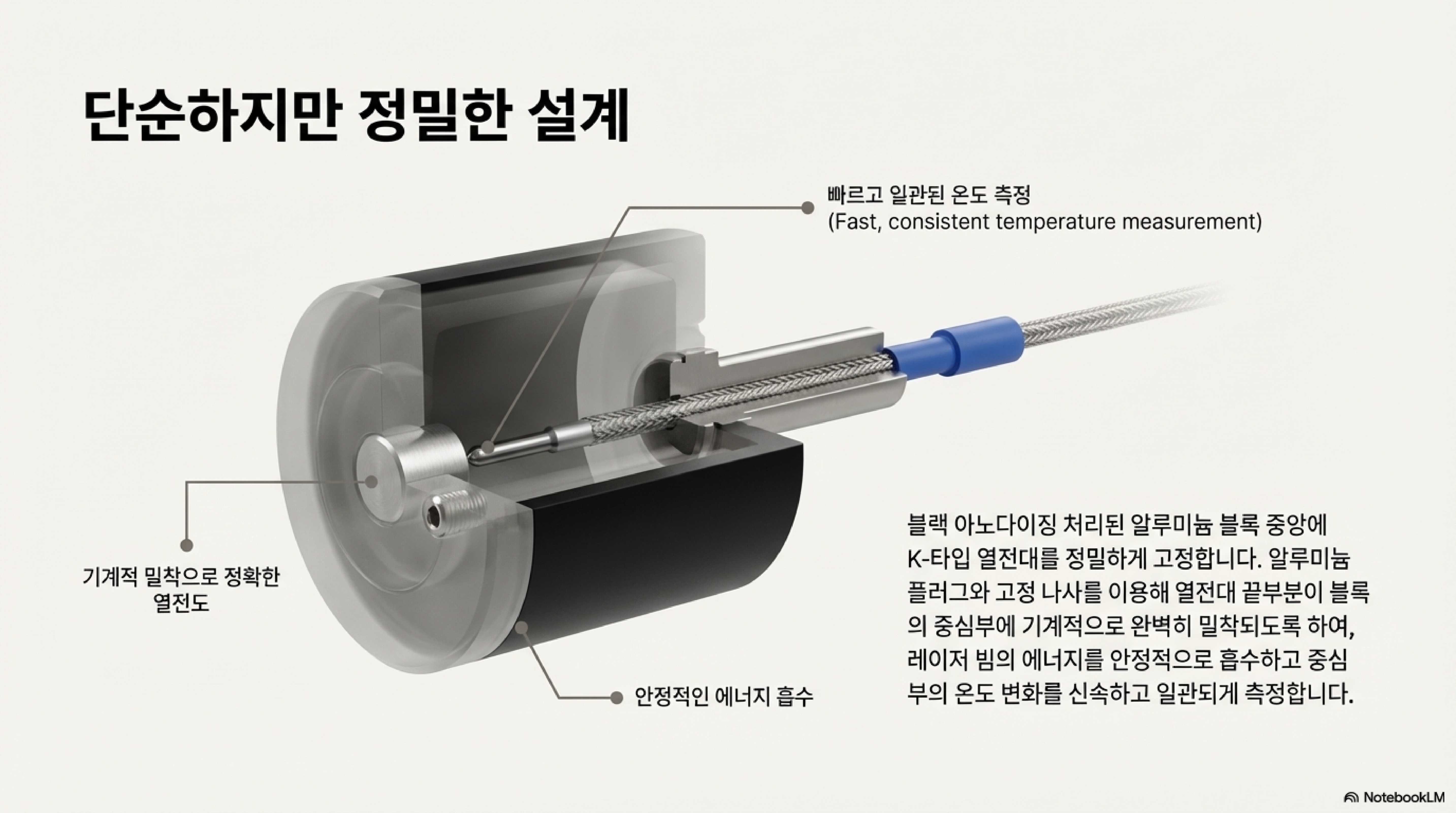 대부분의 사람들은 이 장치가 들어오는 모든 열에너지를 정밀하게 측정하는 '열량계(Calorimeter)'라고 생각합니다. 열량 측정의 원리는 간단합니다. 예를 들어, 병(알루미늄 블록)에 일정 시간 동안 정해진 양의 물(에너지)을 붓고, 그로 인해 얼마나 온도가 올라가는지 측정하는 것과 같습니다. 이 온도 상승분은 병 안에 저장된 에너지의 양과 비례합니다.