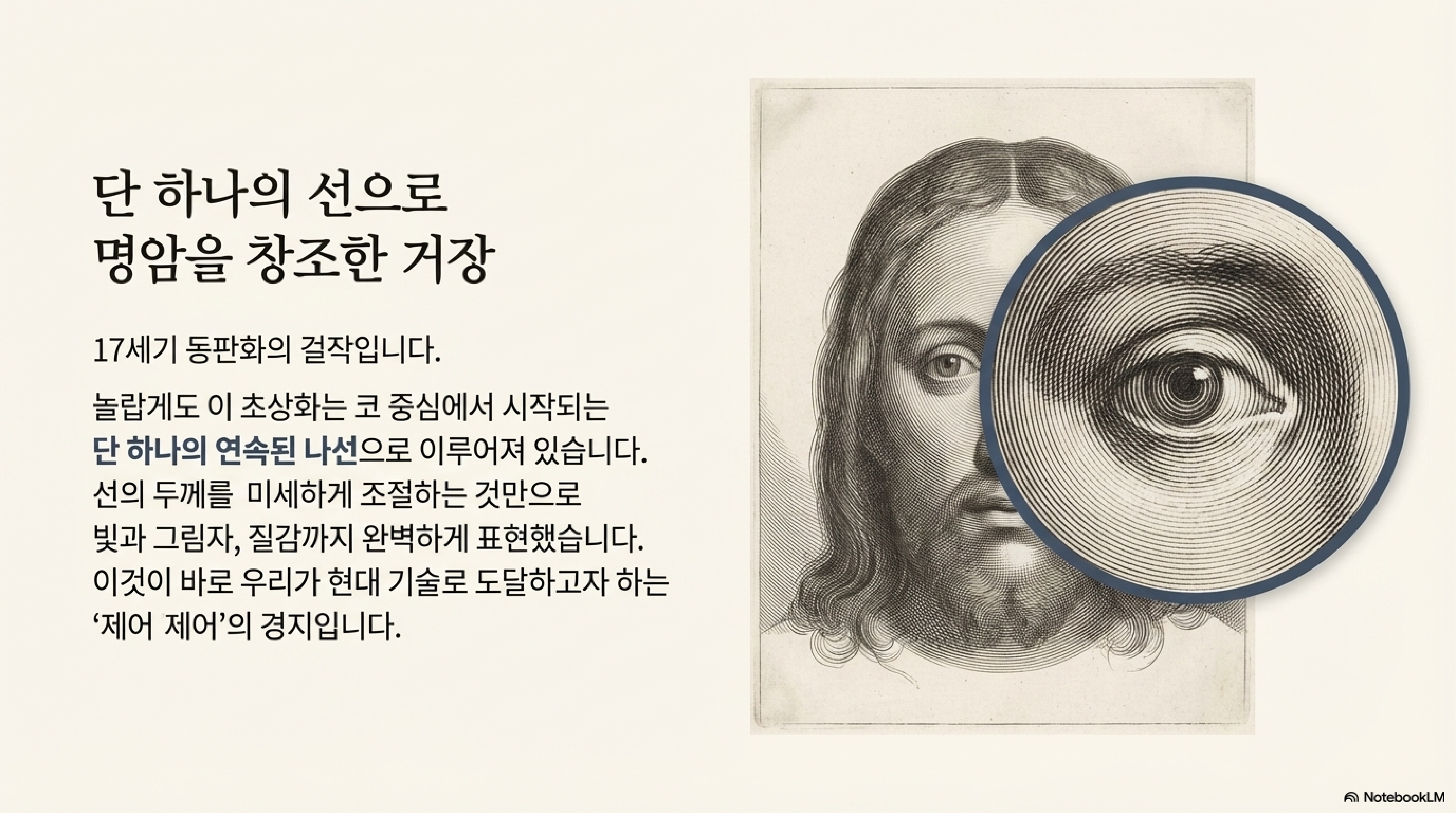 1600년대에 제작된 한 판화를 보면, 놀랍게도 마치 흑백 사진처럼 보입니다. 하지만 이 작품을 자세히 들여다보면 더욱 경이로운 사실을 발견하게 됩니다. 이 복잡한 이미지는 그림 속 인물의 코 중심에서 시작되어 바깥으로 퍼져나가는, 단 하나의 끊어지지 않는 나선으로 이루어져 있습니다.