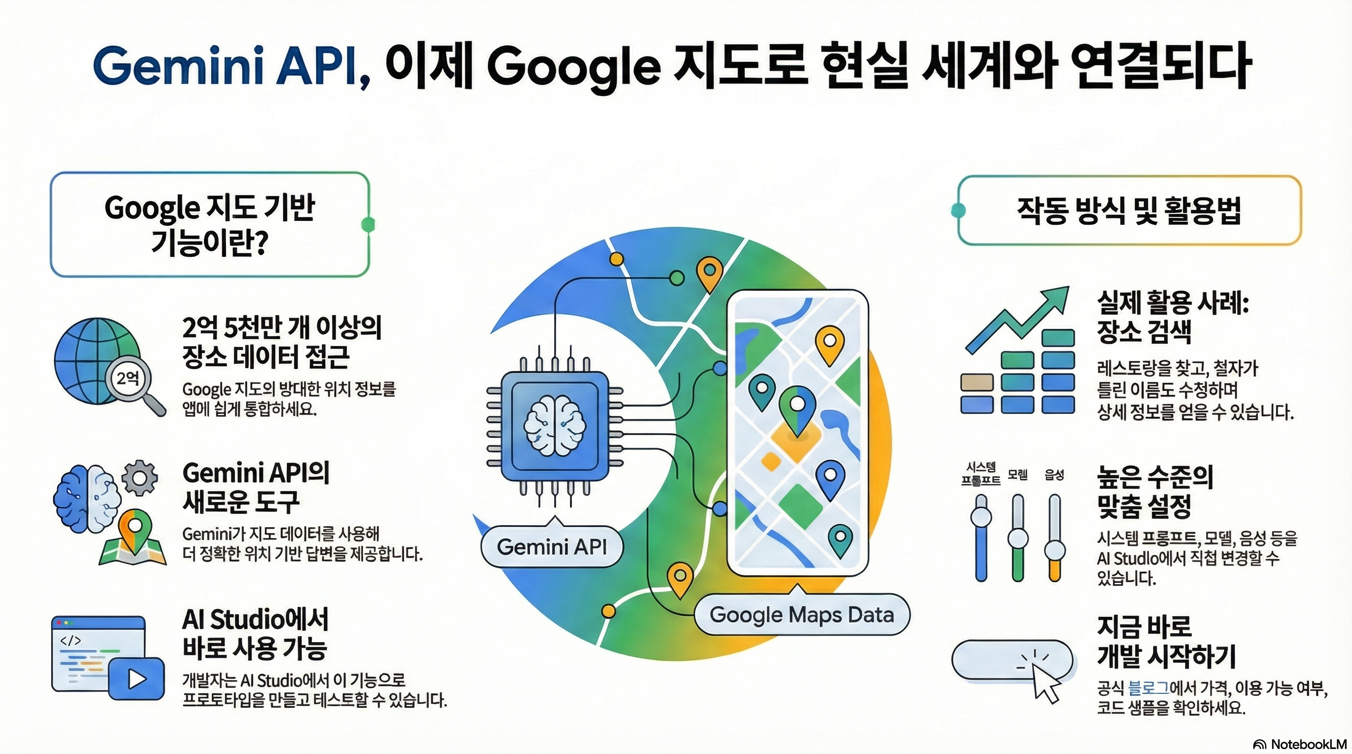 애플리케이션을 개발할 때, 신뢰할 수 있는 최신 장소 데이터를 통합하는 일은 생각보다 까다로운 과제입니다. 사용자가 원하는 레스토랑, 상점, 명소를 정확하고 빠르게 찾아주는 기능은 이제 기본이지만, 그 기반이 되는 데이터를 관리하고 AI와 자연스럽게 연결하는 것은 결코 쉽지 않죠. 바로 이 지점에서 Gemini API에 새롭게 추가된 'Google Maps Grounding' 기능이 등장합니다. 이 기능은 개발자에게 2억 5천만 개가 넘는 구글 지도의 방대한 장소 데이터에 손쉽게 접근할 수 있는 길을 열어주며, AI와 현실 세계를 잇는 강력한 다리가 되어줍니다.