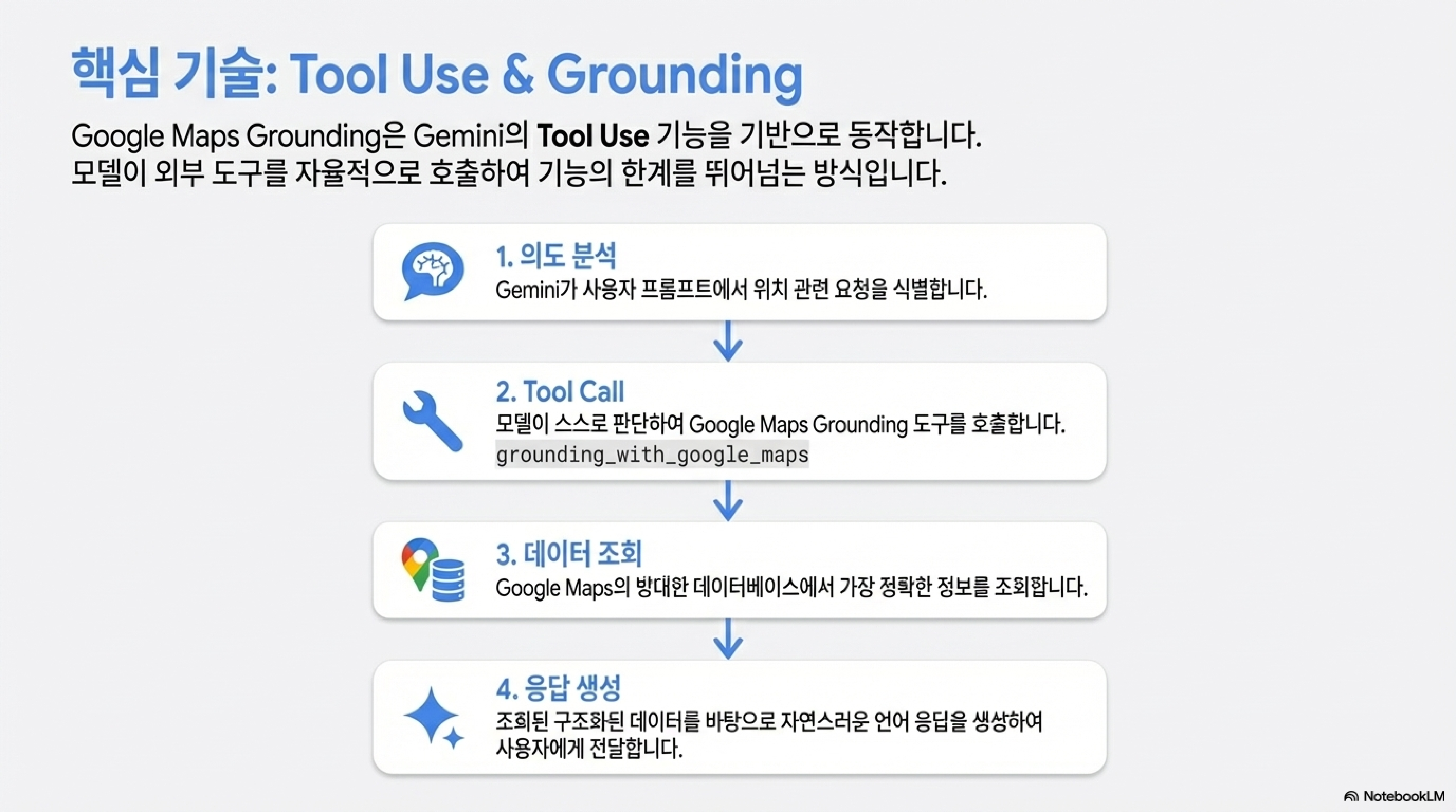 Gemini API의 새로운 Google Maps Grounding 기능은 단순한 정보 검색 도구를 넘어, 사용자와 상호작용하며 경험을 구축하고, 때로는 모호함을 함께 해결하며, 개발자가 원하는 대로 세밀하게 맞춤 설정하고, 자신의 한계를 명확히 인지하는 똑똑한 파트너입니다.