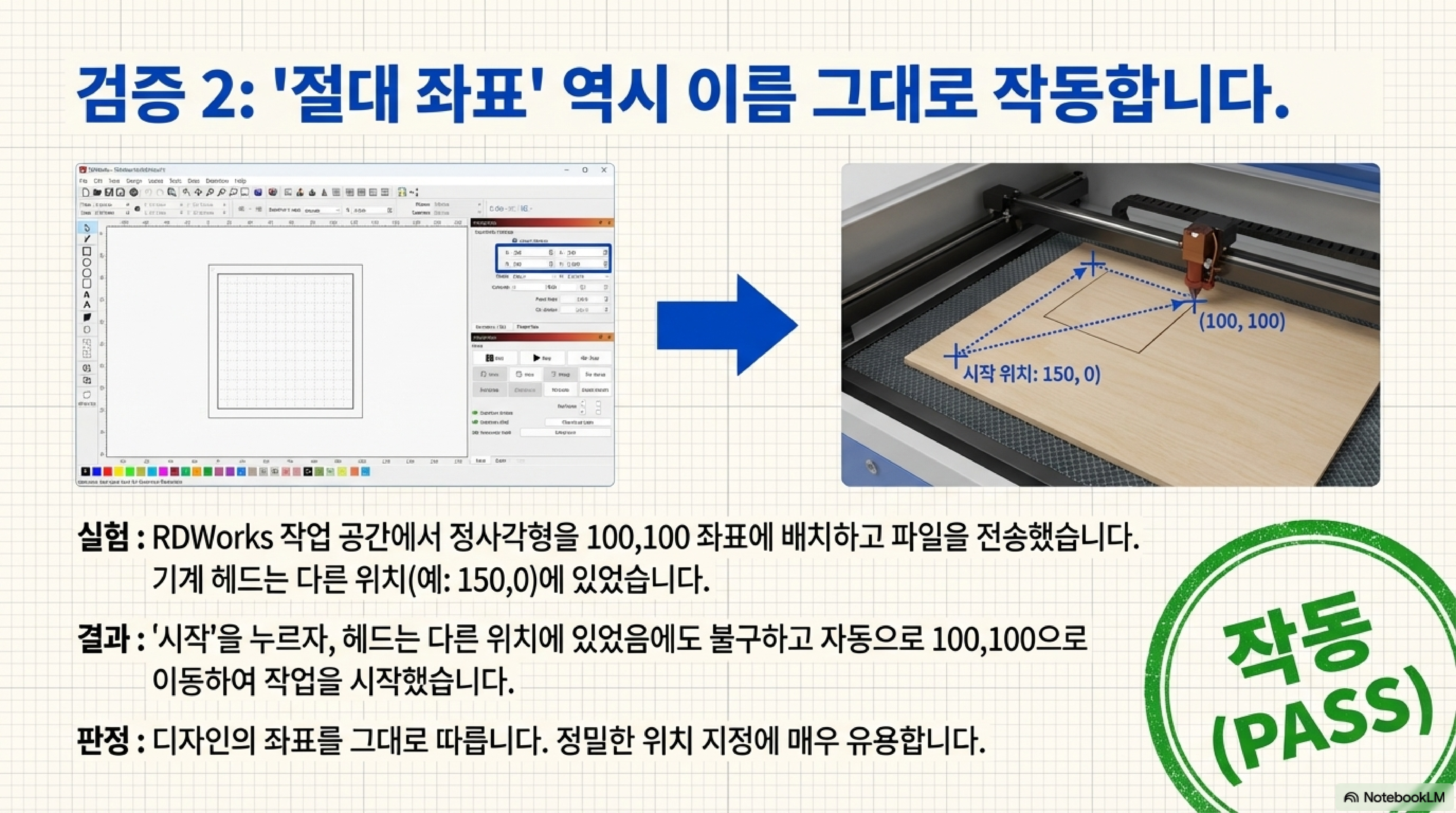 - 실험 결과: 하지만 RDWorks 버전 11과 최신 버전인 18에서 직접 테스트한 결과, 오직 'Current Position'과 'Absolute Coordinates'만이 예상대로 작동했습니다.