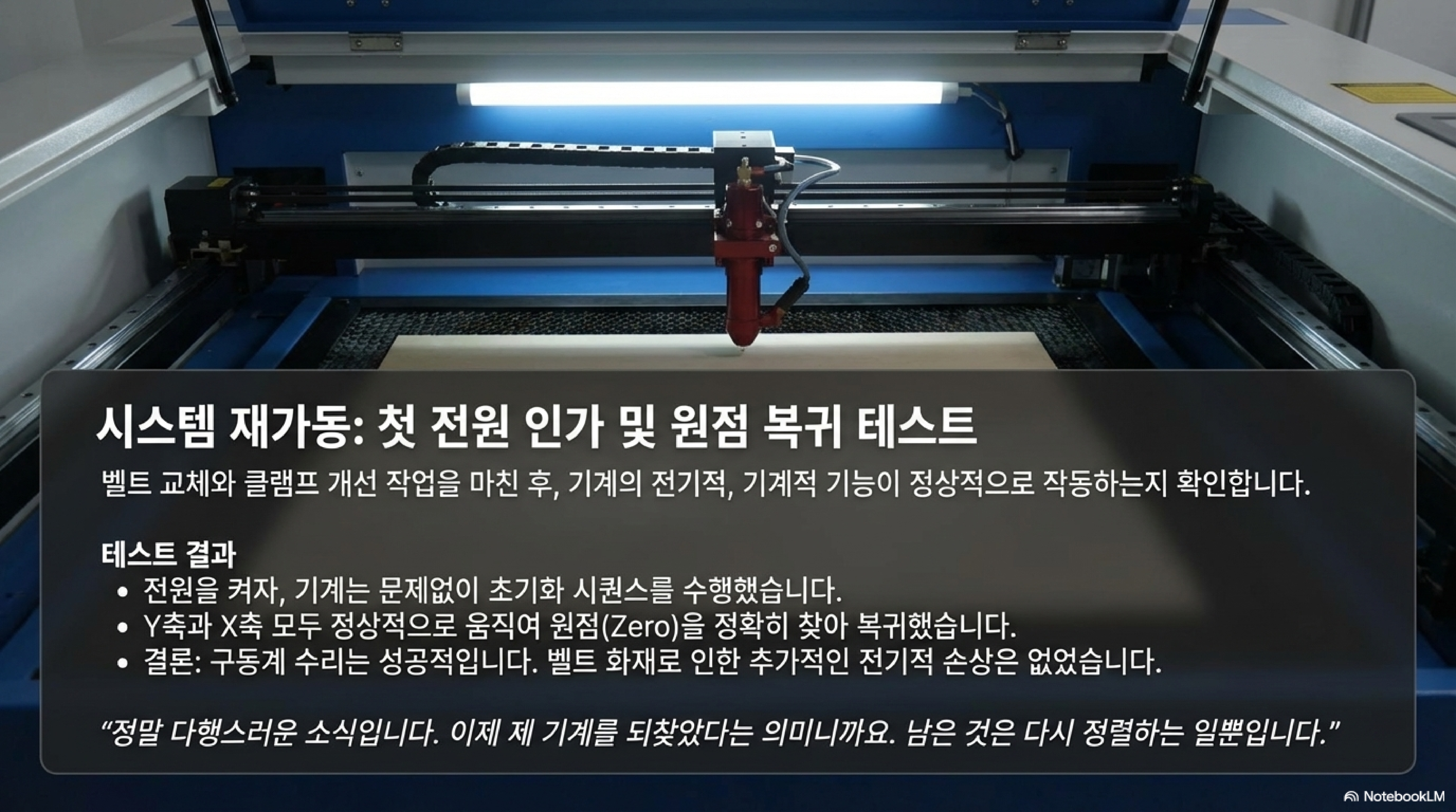 레이저 커터에서 연기가 피어오르고 작은 불꽃이 춤추는 것을 보는 것만큼 메이커의 심장을 철렁하게 하는 순간은 없을 것입니다. 저에게도 그런 끔찍한 날이 있었습니다. 제 작업실의 심장과도 같았던 기계가 한순간의 실수로 화염에 휩싸였습니다. 처음에는 그저 망가진 부품을 교체하고 기계를 원상 복구하는 것만이 목표였습니다. 하지만 기계를 분해하고 수리하는 과정에서, 저는 단순히 부품을 교체하는 것 이상의 예상치 못한 발견과 귀중한 교훈들을 얻게 되었습니다. 이 글은 단순한 수리 기록이 아니라, 값비싼 실패를 통해 배운 교훈에 대한 이야기입니다.