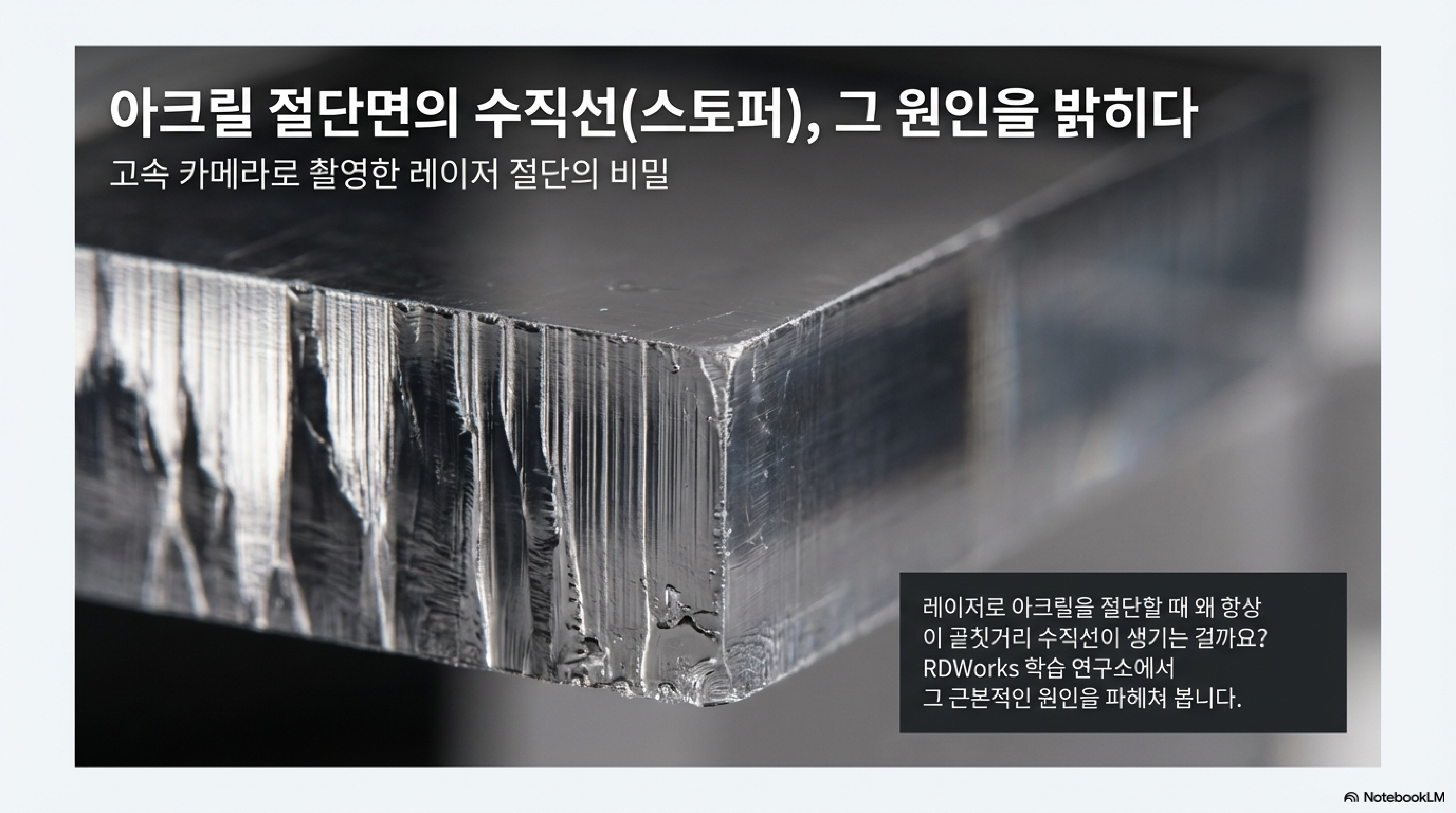 레이저 커터를 사용해 본 사람이라면 누구나 겪어봤을 법한 좌절의 순간이 있습니다. 완벽하게 디자인된 아크릴 조각을 꺼내 들었을 때, 그 옆면에 보기 흉하게 남은 물결무늬 자국(줄무늬, striations)을 발견하는 순간이죠. 이 작은 흠집 하나가 공들인 작업물 전체의 완성도를 떨어뜨립니다. 대체 이 줄무늬는 왜 생기는 걸까요? 그리고 과연 이 문제를 해결할 방법은 없을까요?