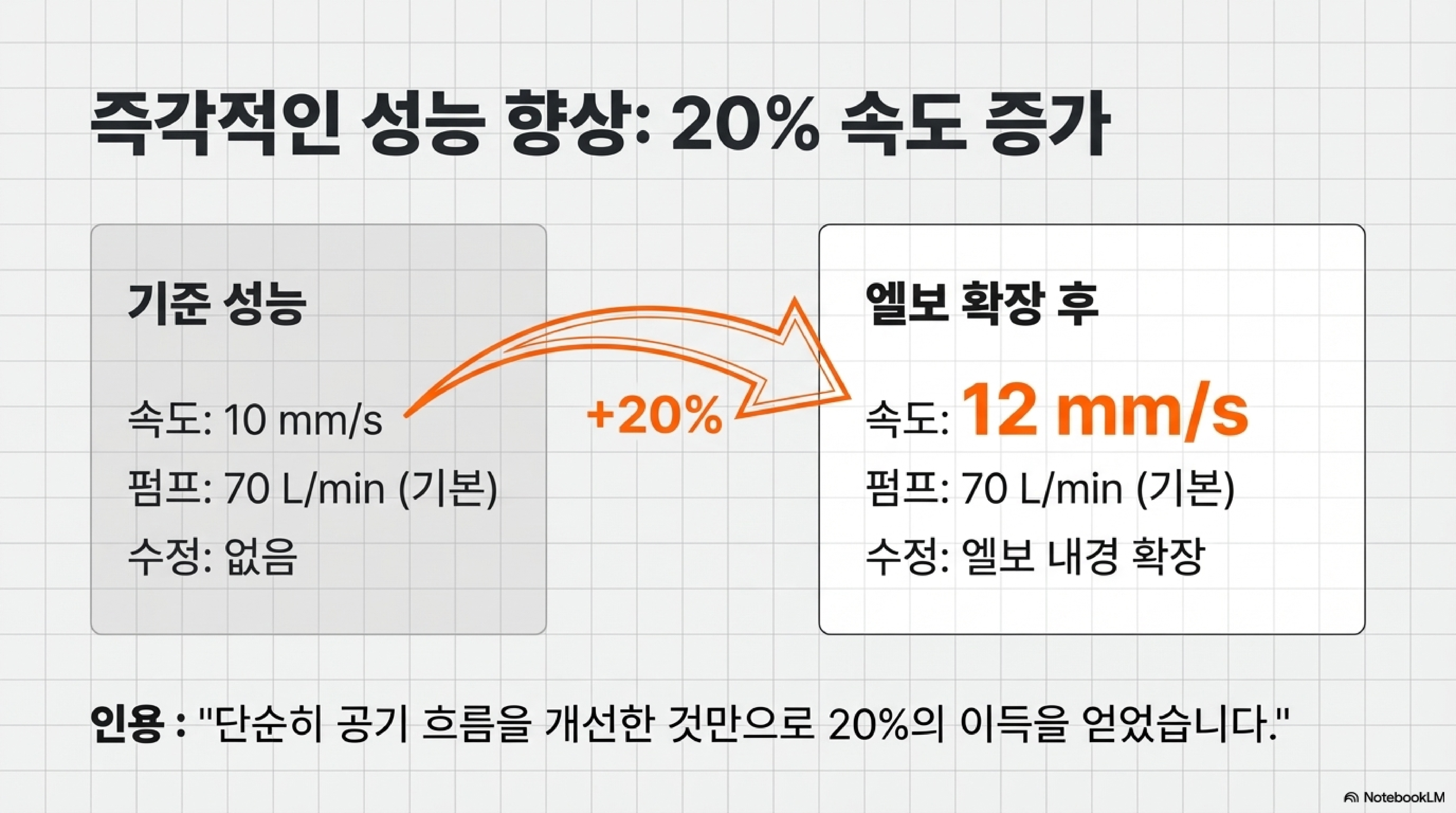 - 1단계: 병목 제거 (Bottleneck Removed): 12 mm/s (속도 20% 향상)