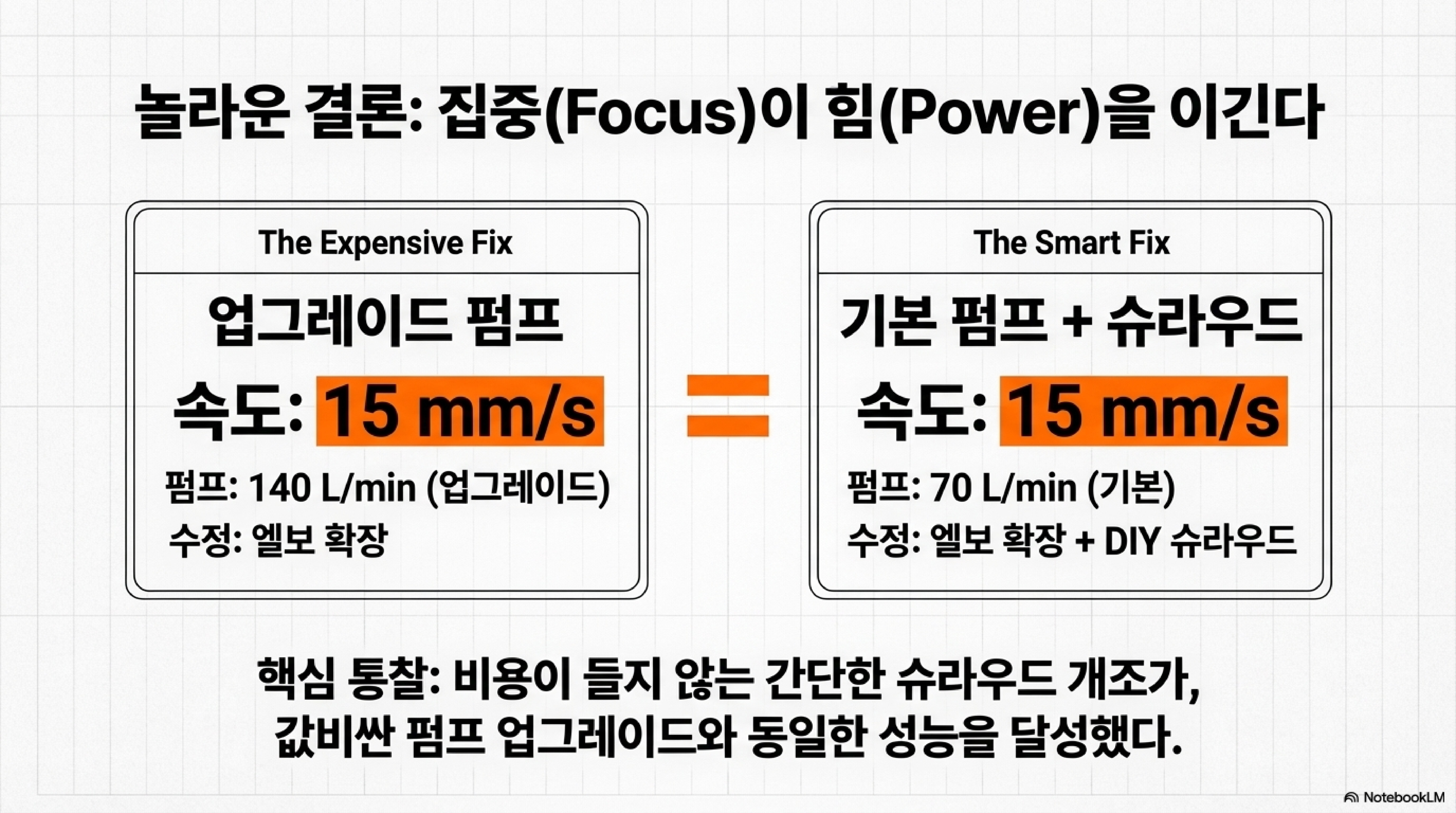 돈 한 푼 들이지 않은 간단한 개조가 두 배 비싼 펌프로 교체했을 때보다 더 큰 성능 향상을 가져온 것입니다. 핵심은 단순히 '더 많은' 공기가 아니라, '더 똑똑하게 집중된' 공기였습니다.