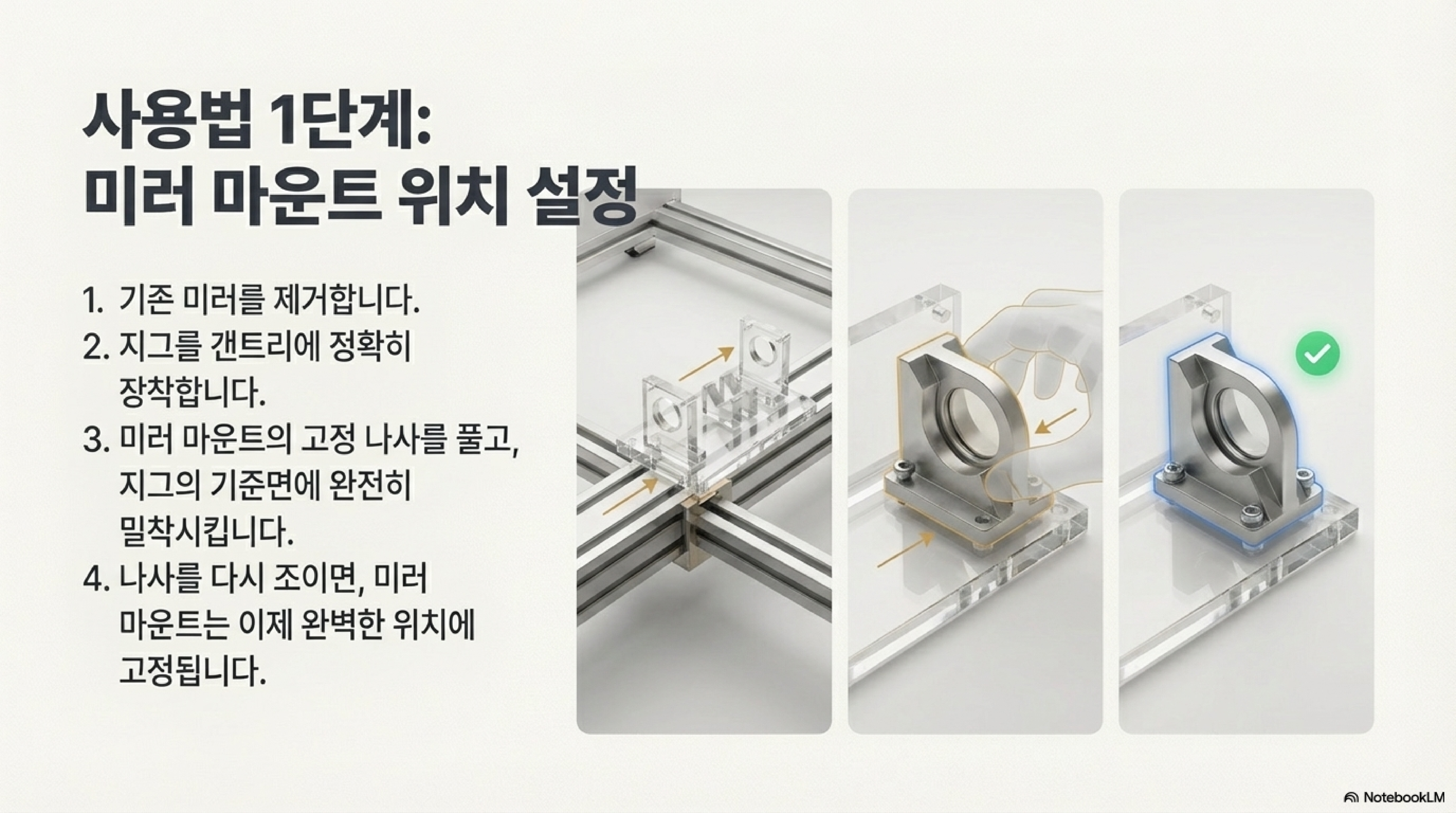 레이저 빔 정렬은 단순히 나사를 돌리는 기술적인 행위가 아닙니다. 그것은 기계의 기하학적 구조를 해체하고, 내장된 설계의 가정을 의심하며, 물리적인 도구를 사용해 '올바른' 기하학을 강제하는 과정입니다. 자유로운 조정이 가능하다는 환상을 버리고, 고정된 헤드를 기준으로 역으로 사고하며, 보이지 않는 Z축의 중요성을 인지하고, 마지막으로 올바른 도구를 사용한다면 아무리 복잡해 보이는 문제라도 명쾌하게 해결할 수 있습니다.