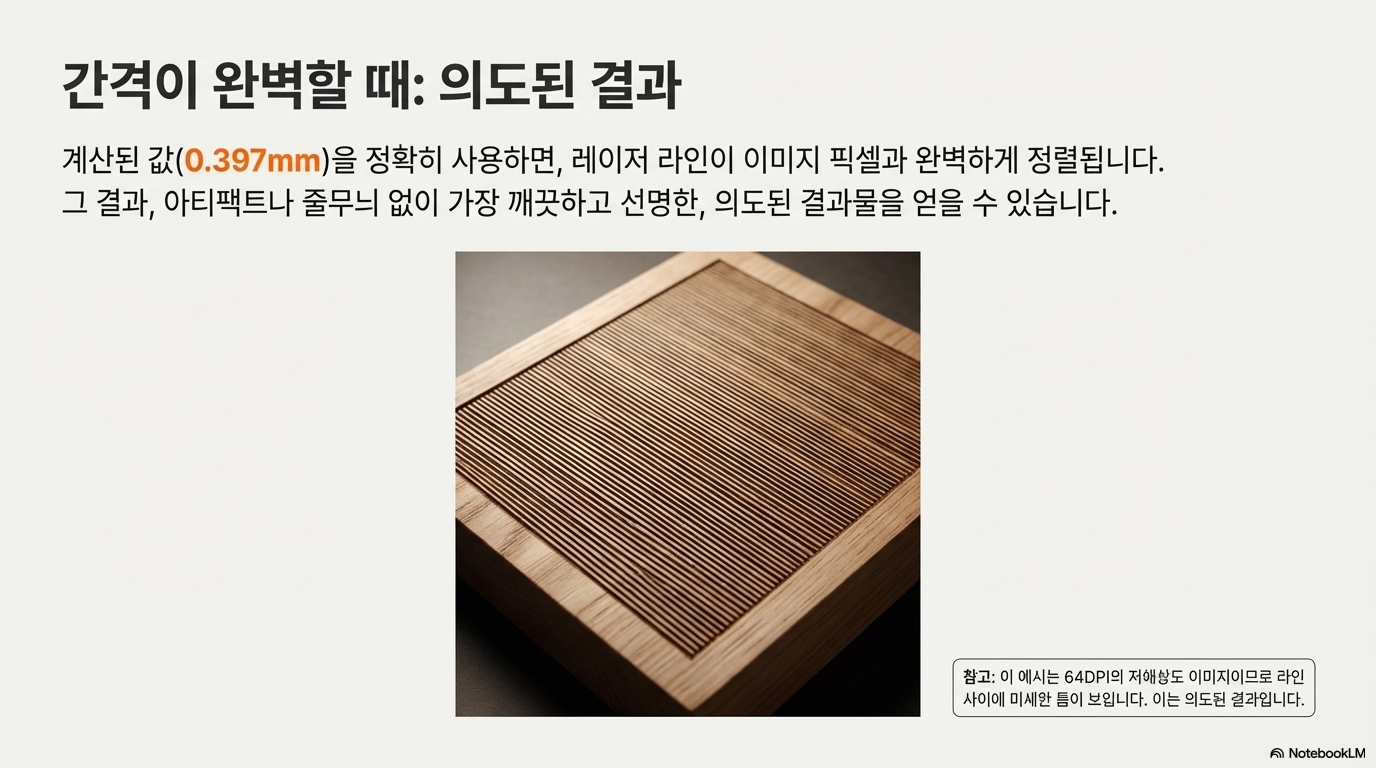 이 작은 숫자 값이 레이저 빔이 각 라인을 얼마나 촘촘하게 그릴지 결정하며, 최종 이미지의 선명도와 품질에 직접적인 영향을 미칩니다. 이 값을 제대로 이해하고 설정하는 것이 완벽한 사진 각인의 첫걸음입니다.