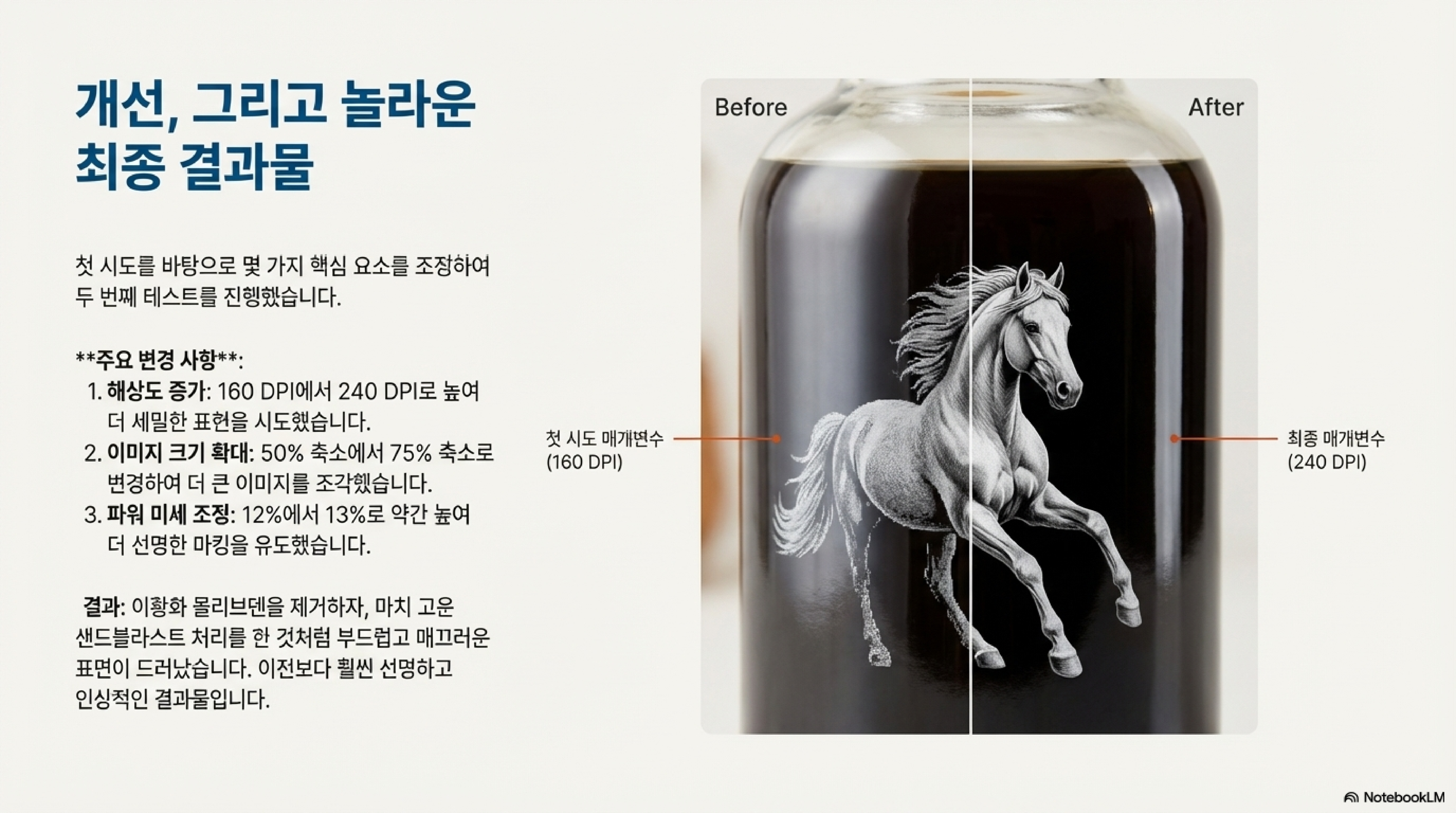 하지만 유리와 같은 특정 재료를 다룰 때, 현실은 훨씬 더 미묘하고 직관에 반하며 과학적으로 흥미롭습니다. 레이저는 단순히 표면을 태우는 것 이상의 일을 합니다. 이 글에서는 한 DIY 레이저 각인 프로젝트를 통해 발견한 몇 가지 놀라운 비밀과 기발한 "핵심 비결"을 공개하고자 합니다.