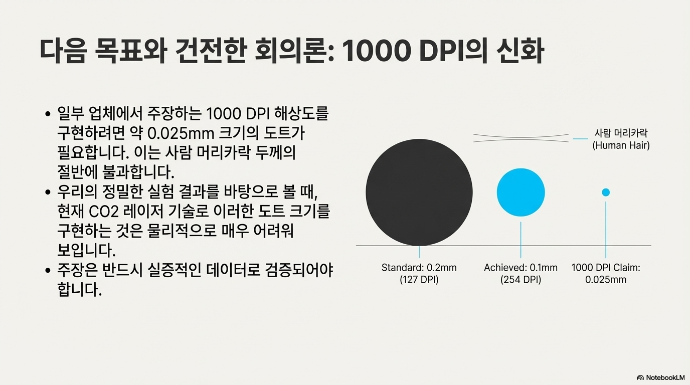 이것은 최적의 해상도가 단순히 가능한 가장 높은 숫자를 추구하는 것이 아니라, 물리적인 점 크기와 소프트웨어 설정 사이의 섬세한 균형을 찾는 것임을 명확히 보여줍니다.