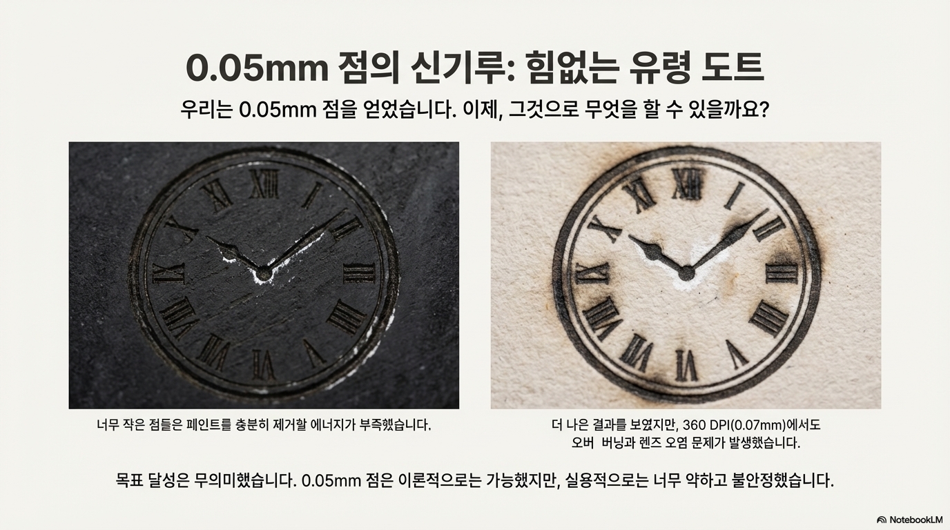 6개월간의 여정 끝에 0.05mm라는 목표를 달성했을 때의 흥분은 잠시였습니다. 기술적 한계를 극복하고 얻어낸 '가장 작은 점'이 완벽한 해결책이 아니라, 새로운 종류의 문제와 역설을 만들어낸다는 사실을 깨달은 것입니다.