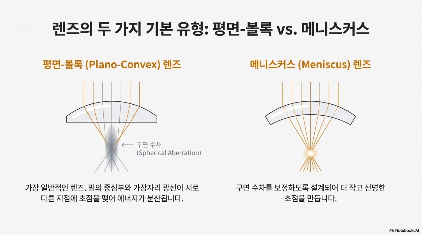 평면 볼록(plano-convex) 렌즈는 평평한 면이 재료를 향하도록, 즉 아래쪽으로 설치해야 한다는 것이 일반적인 상식입니다. 하지만 놀랍게도 이 상식은 항상 정답이 아닐 수 있습니다.