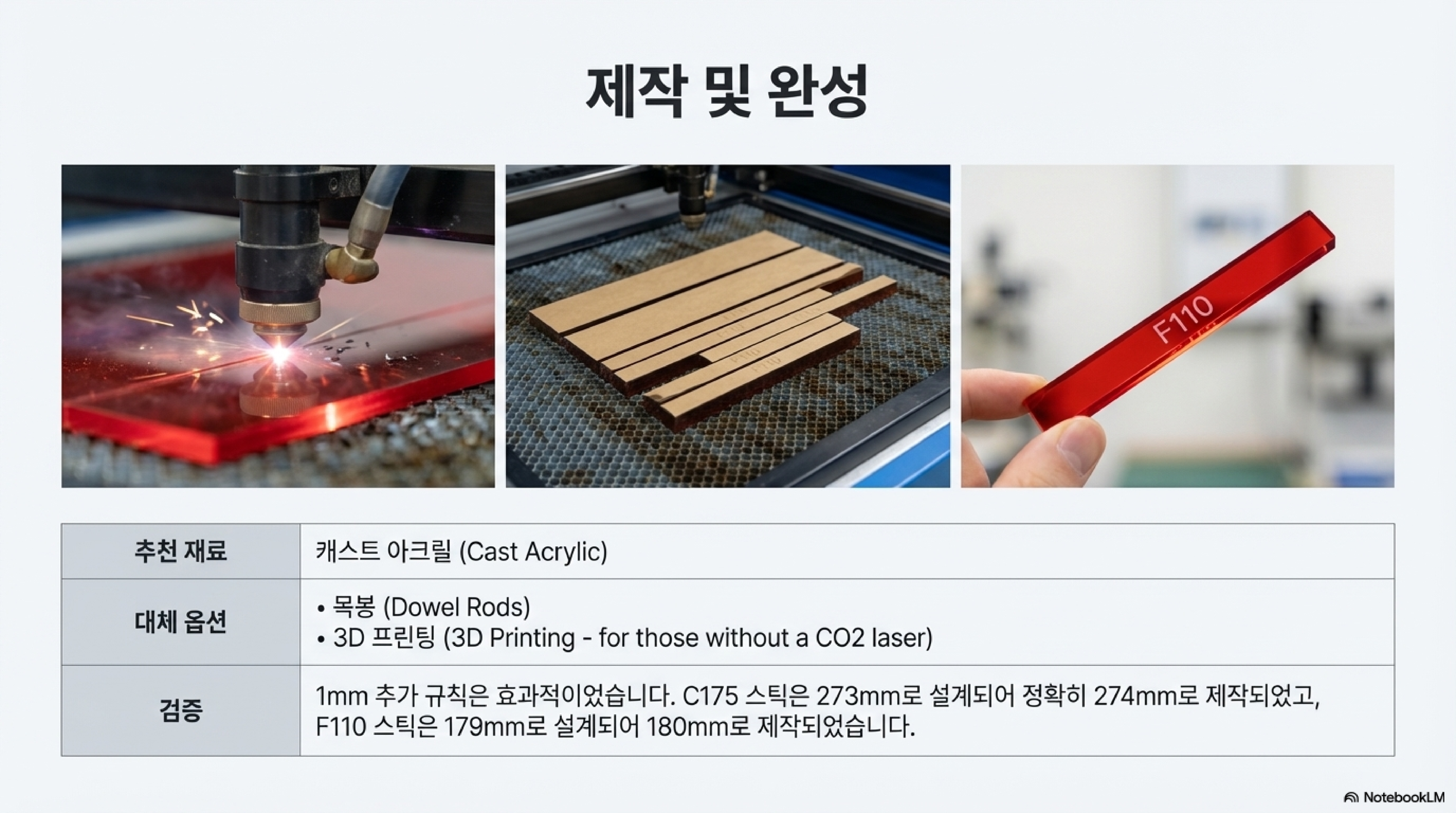하지만 여기서 진짜 전문가는 "CO2 레이저가 없으면 어떡하죠?"라는 질문에 막히지 않습니다. 그는 곧바로 실용적인 대안을 제시합니다. "목봉(dowel rods)을 사서 자르면 됩니다. 그래도 충분히 할 수 있어요." 이 한마디는 원칙(물리적 초점)이 특정 도구(레이저로 자른 아크릴 스틱)보다 중요하다는 '메이커 정신'을 보여줍니다. 첨단 기술의 성능을 100% 끌어내는 비결은 아이러니하게도 가장 기초적인 아날로그 준비 과정에 있었습니다.