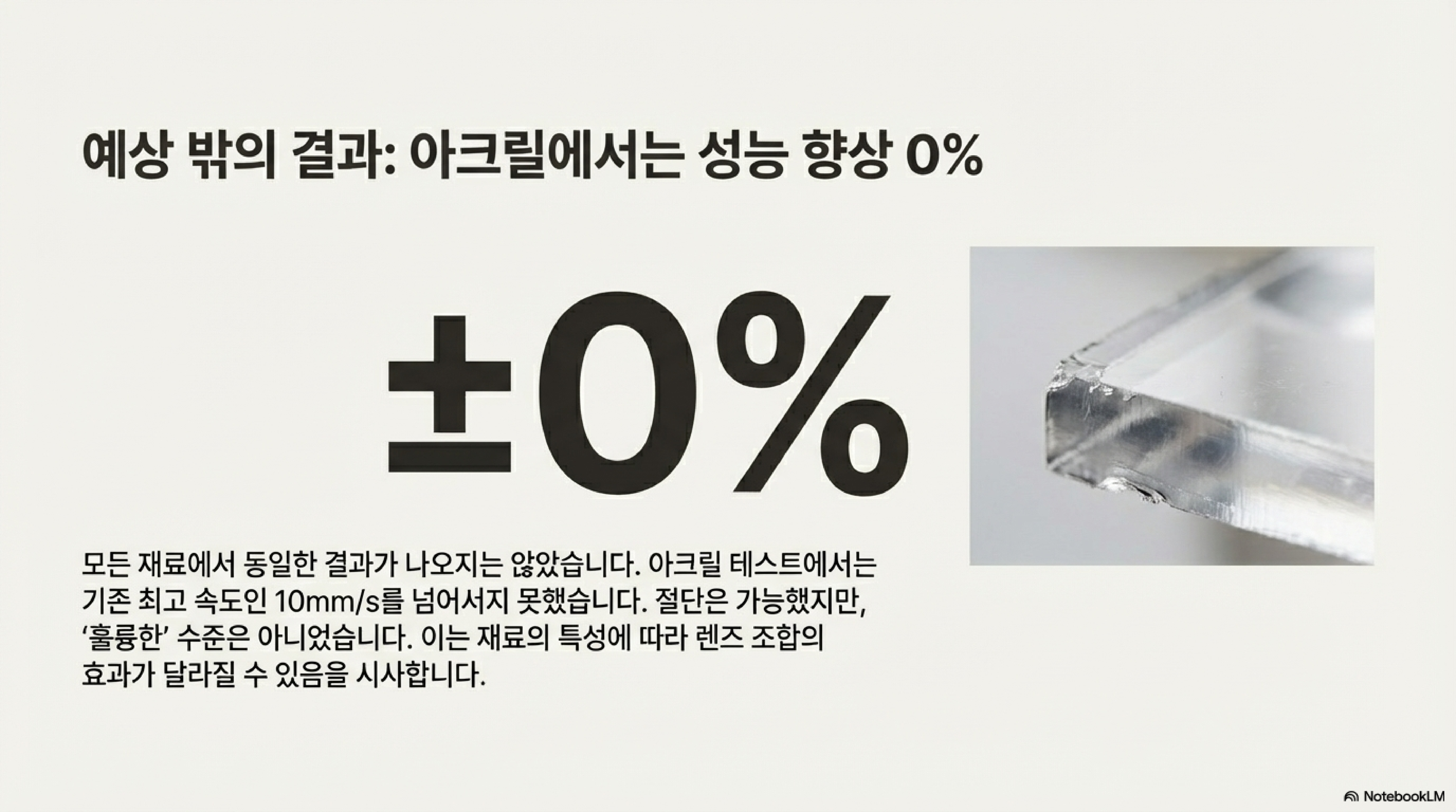 모든 것이 완벽했다면 좋았겠지만, 이 실험은 모든 재료에 통하는 '마법'이 아니라는 중요한 사실도 발견했습니다. 바로 아크릴 소재에서 예상 밖의 결과가 나온 것입니다.