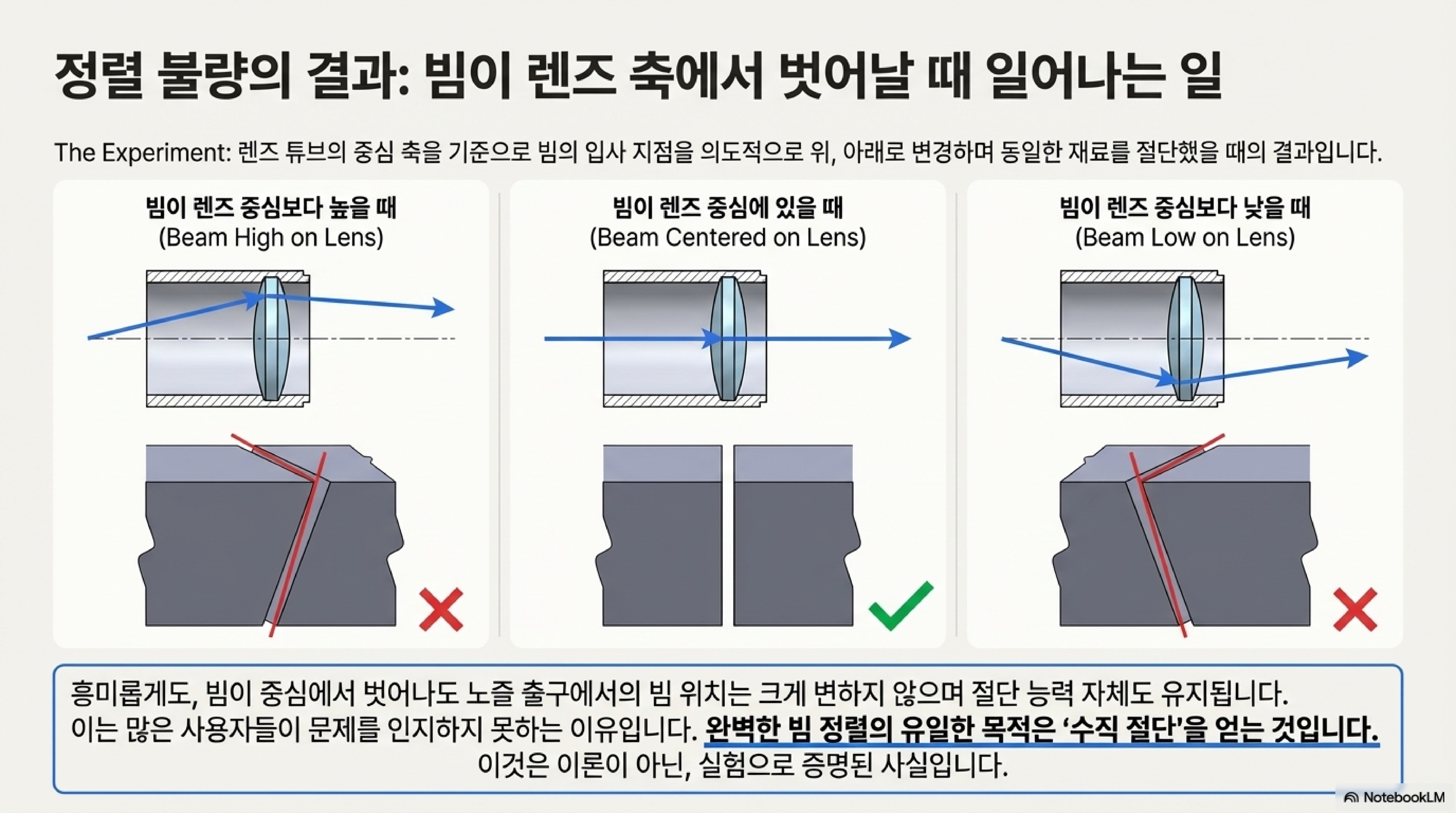 4. 완벽한 정렬의 놀라운 진실: 비뚤어진 빔은 절단을 실패시키는 것이 아니라, 절단면을 기울게 할 뿐이다