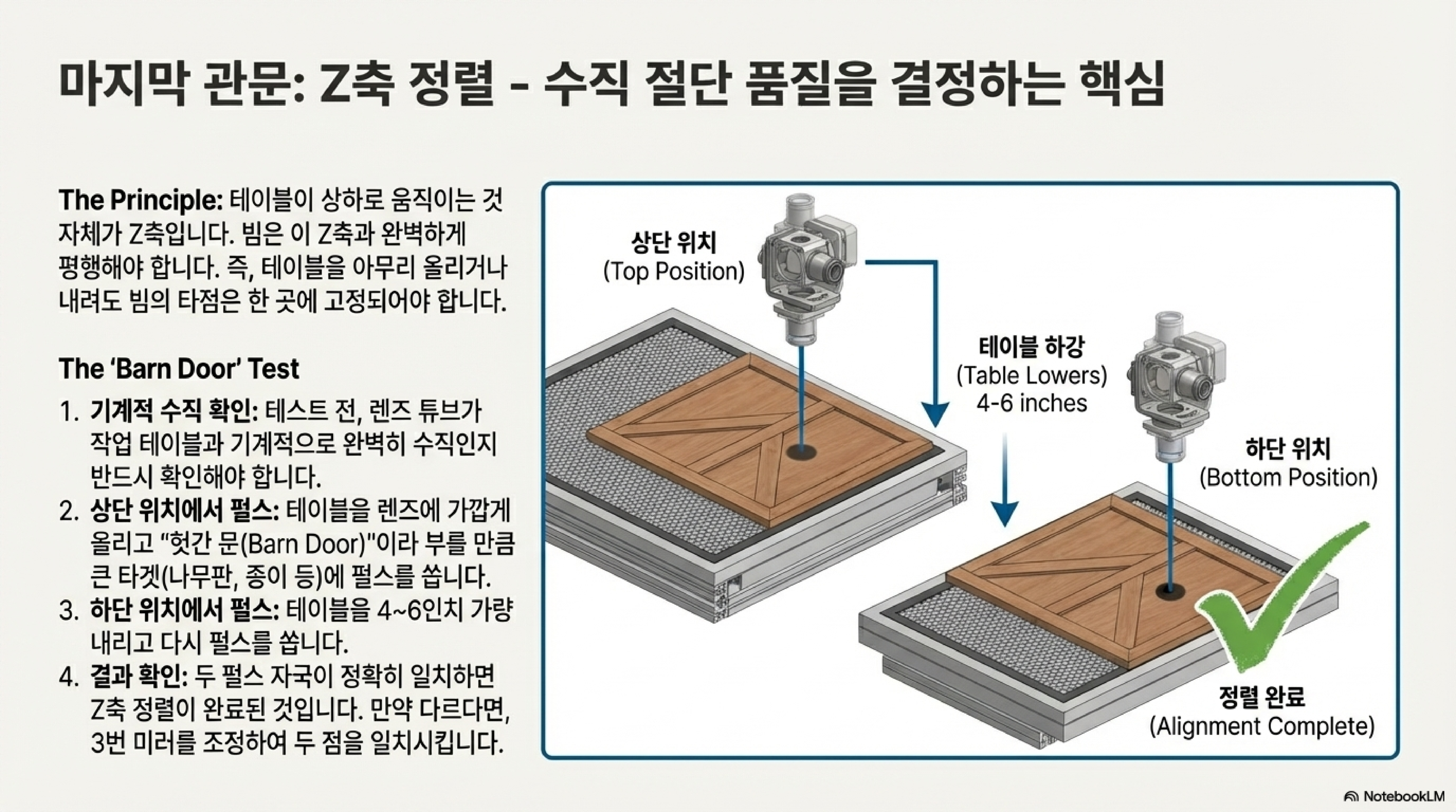 이는 매우 중요한 통찰을 담고 있습니다. 때로는 첨단 기술처럼 보이는 보조 도구보다, 가장 직접적이고 본질적인 접근법이 가장 정확한 해답을 준다는 역설입니다. 문제의 현상을 흉내 내는 대리인(proxy)이 아니라, 문제의 본질(레이저 빔)과 직접 마주하는 것만이 우리를 진실로 이끌 수 있습니다.