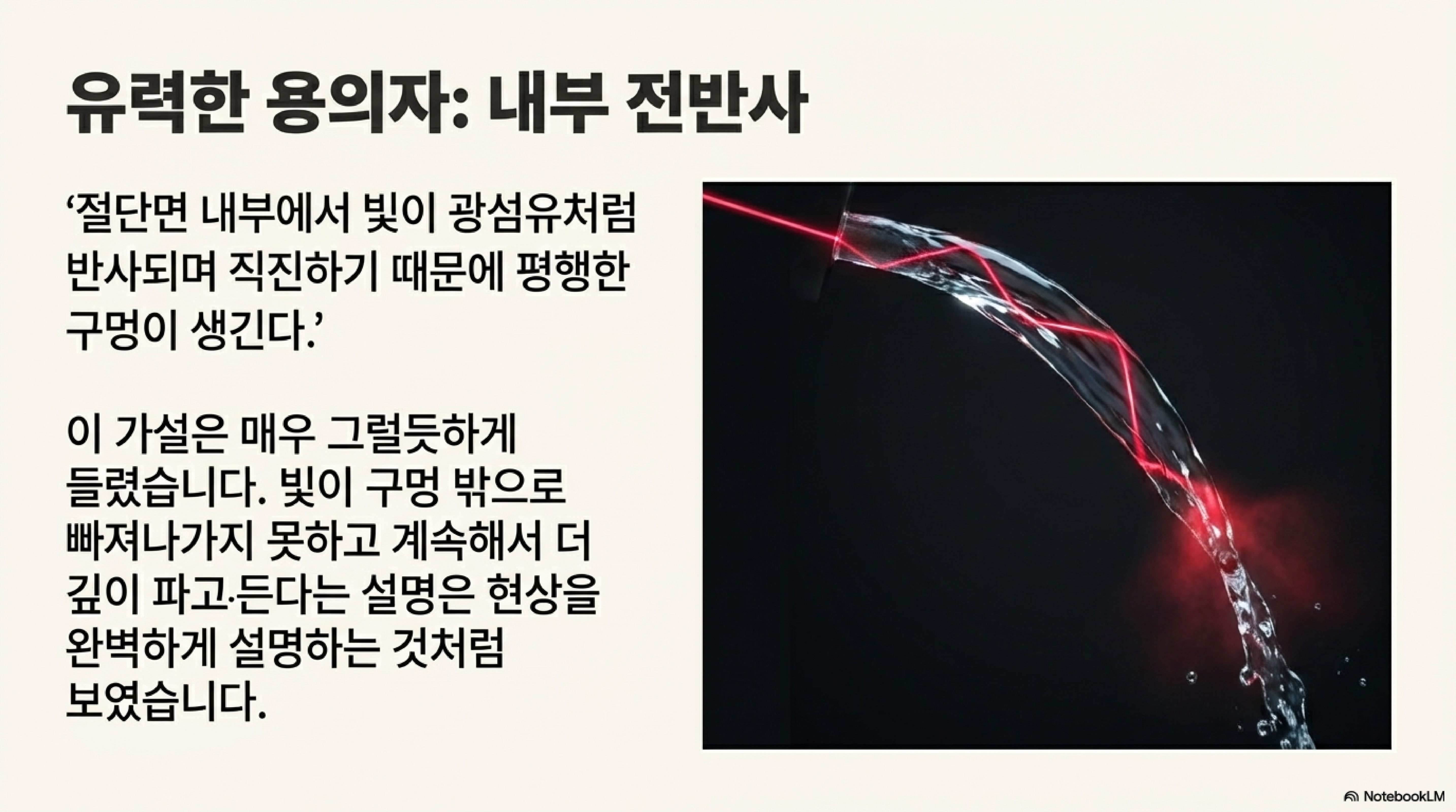 빔의 중심부에 힘이 쏠려 있다는 것만으로는 수수께끼가 풀리지 않았습니다. 기존 이론에 따르면 초점을 지난 빛은 흩어져야만 하는데, 어떻게 10mm 두께의 재료에 평행한 구멍이 뚫릴 수 있었을까요? Russ는 이 모순을 해결하기 위해 렌즈 자체의 근본적인 특성을 파고들기 시작했습니다.