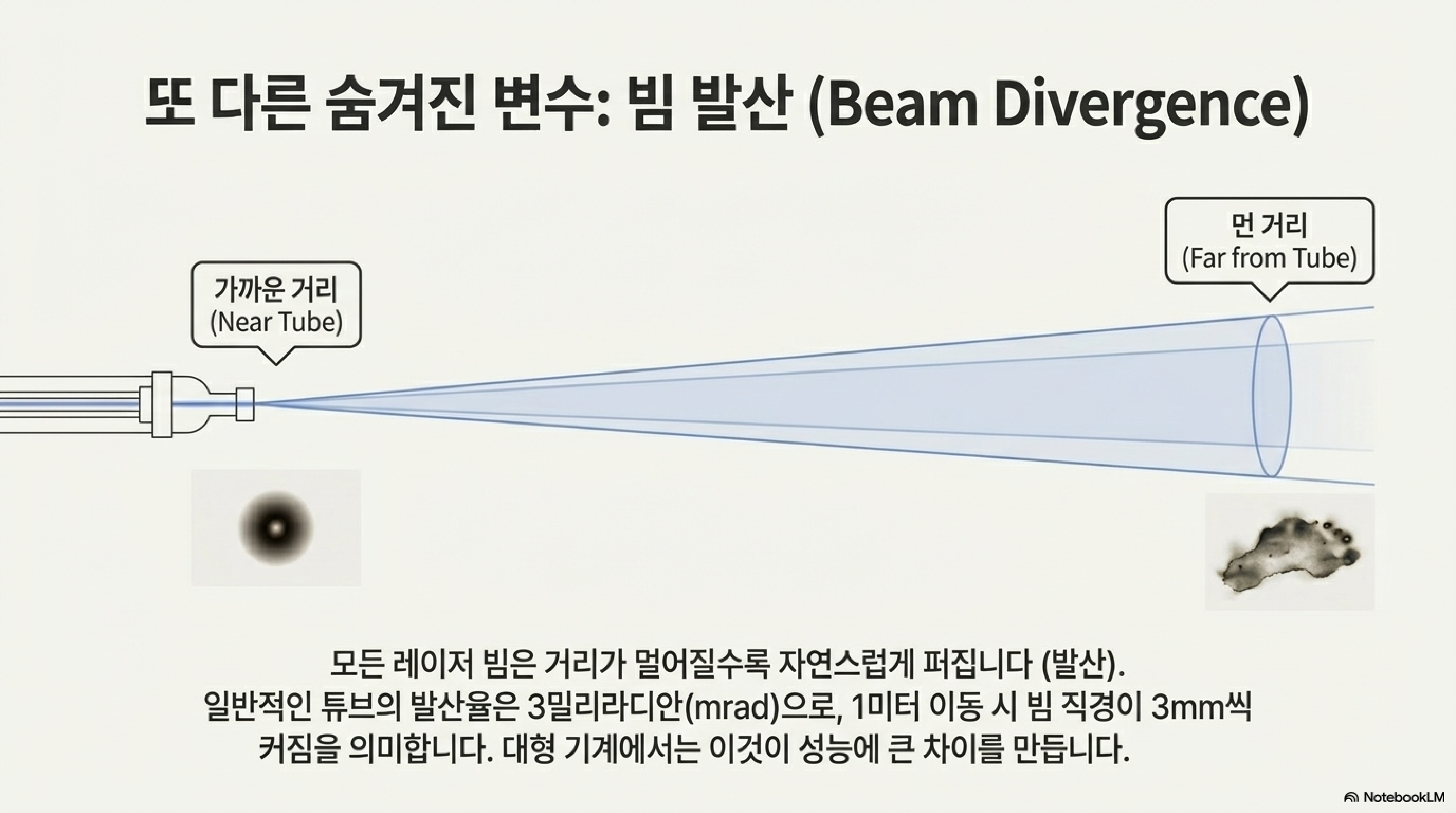4. 작업 영역에 '약한 지점'이 생기는 이유: 빔 발산(Beam Divergence)