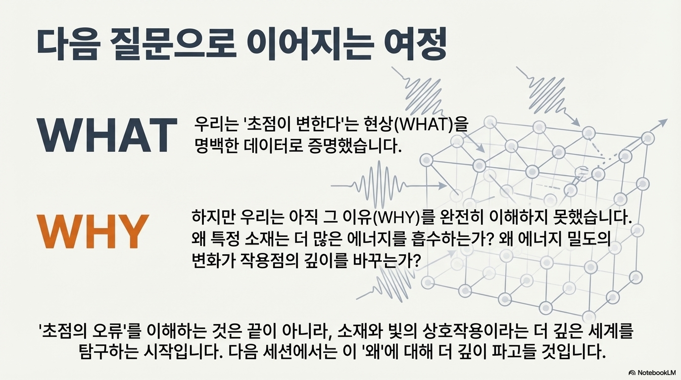 이 역설을 이해하려면 두 가지 초점을 구분해야 합니다. 첫째는 렌즈 고유의 속성인 **고정된 광학적 초점(fixed optical focal point)**입니다. 둘째는 특정 작업에서 가장 효율적인 에너지 전달이 일어나는 지점인 **역동적인 유효 초점(dynamic effective focus)**입니다. 핵심부터 말하자면, 우리가 실제로 찾아야 할 것은 바로 이 유효 초점이며, 이는 결코 고정되어 있지 않습니다.