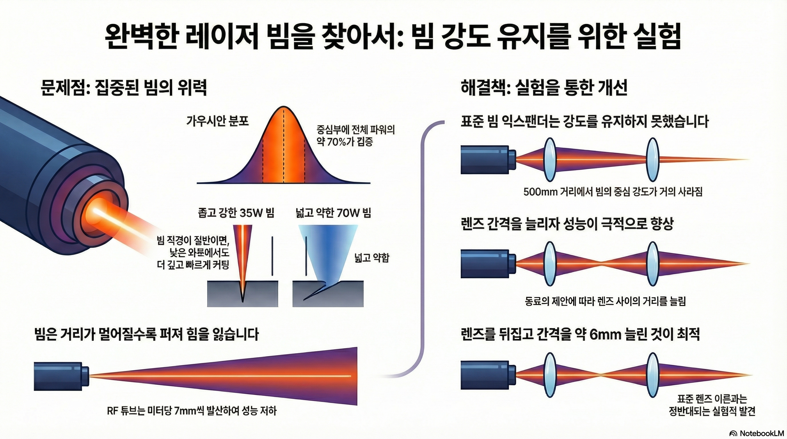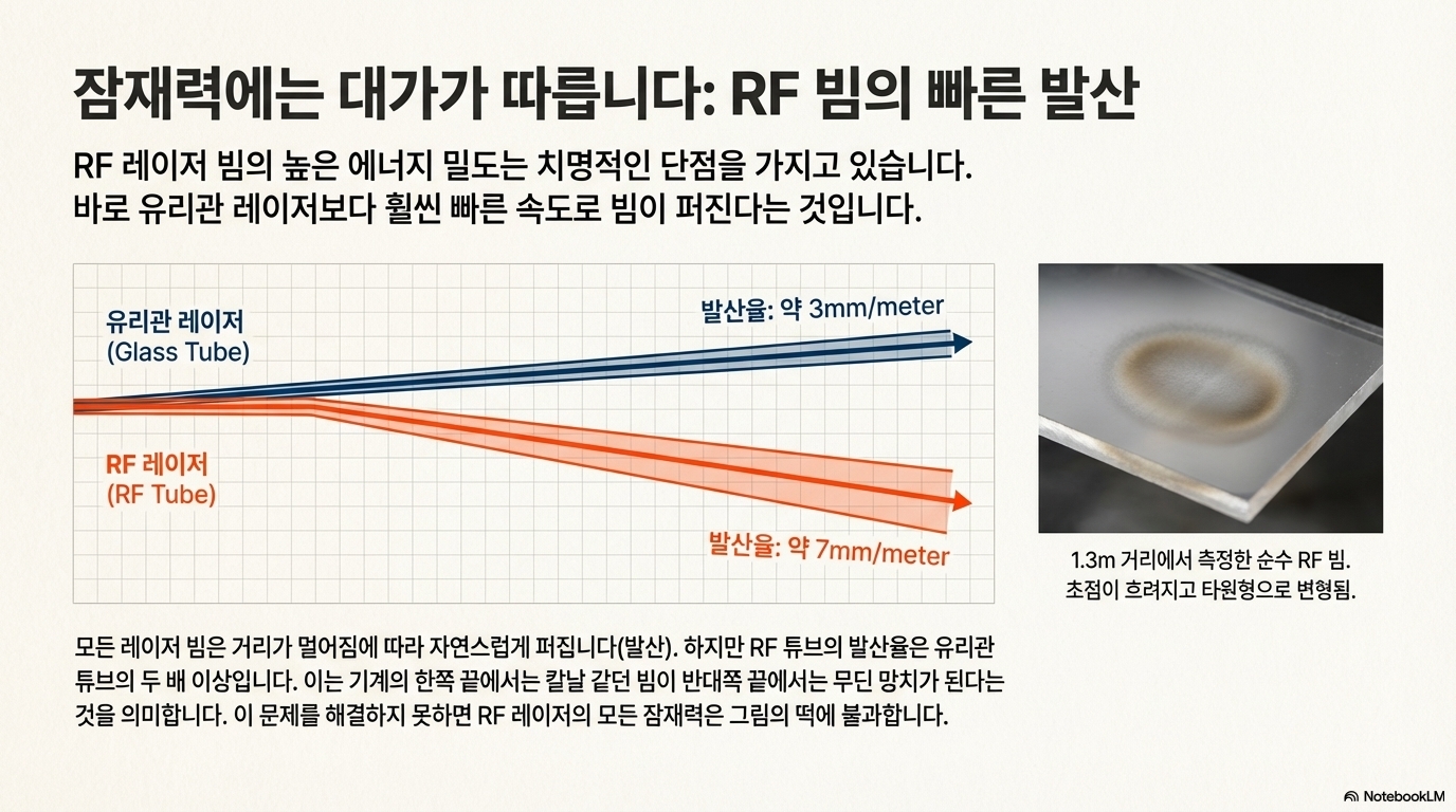 레이저 빔은 거리가 멀어짐에 따라 자연스럽게 퍼지는(발산하는) 성질이 있으며, 특히 RF 빔은 그 속도가 더 빠릅니다. 업계의 표준 해결책은 '빔 익스팬더(beam expander)'를 사용하여 빔을 평행하게 만들어 이 문제를 해결하는 것입니다. 하지만 실험 결과는 충격적이었습니다.