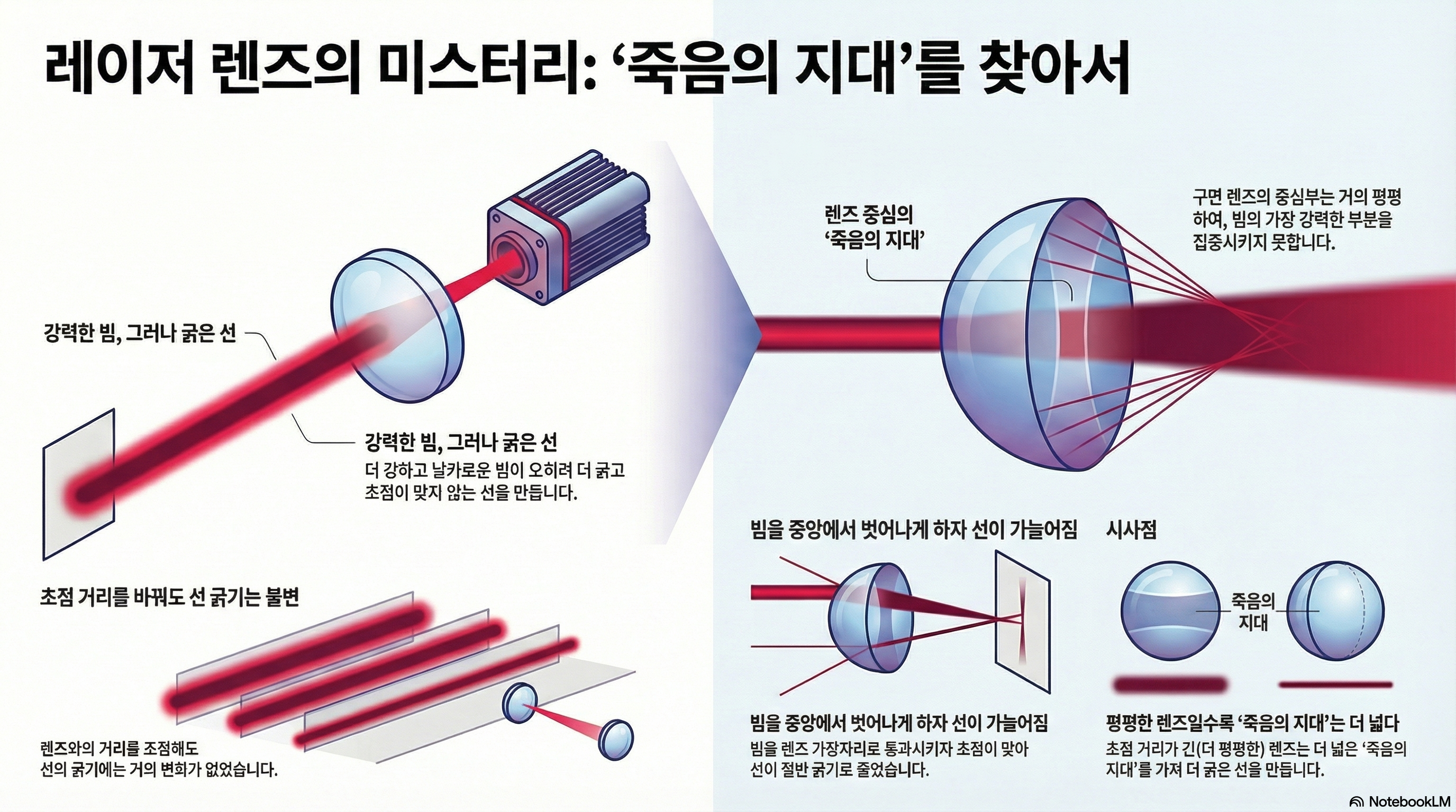 레이저 렌즈와 빔의 성능은 우리가 생각했던 것보다 훨씬 더 복잡하고 미묘한 상호작용의 결과물입니다. 렌즈 중앙의 '데드존'과 빔의 가우시안 분포가 만나 우리가 예상치 못한 결과를 만들어내는 것처럼 말입니다.