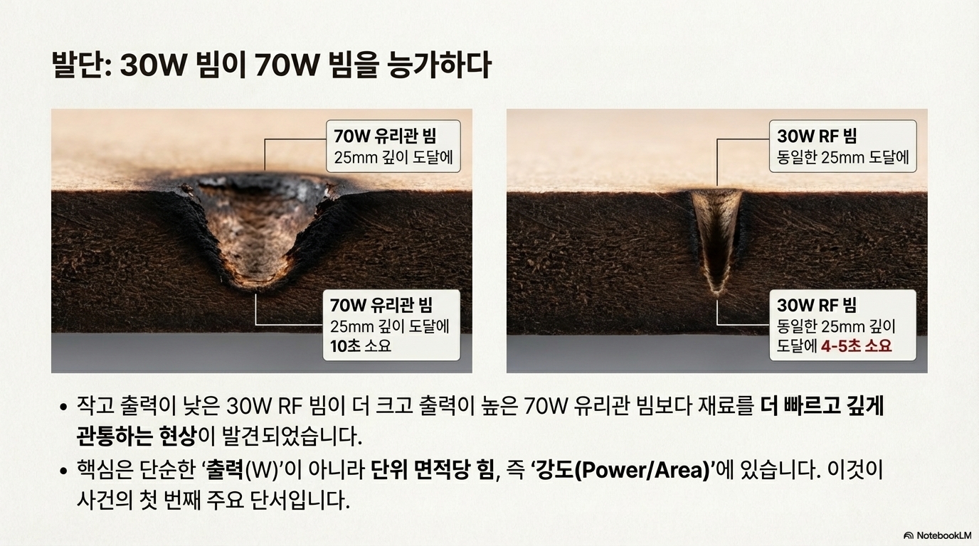 2.0 발견 1: 출력이 전부가 아니다 - 30W 레이저가 70W를 이기는 이유