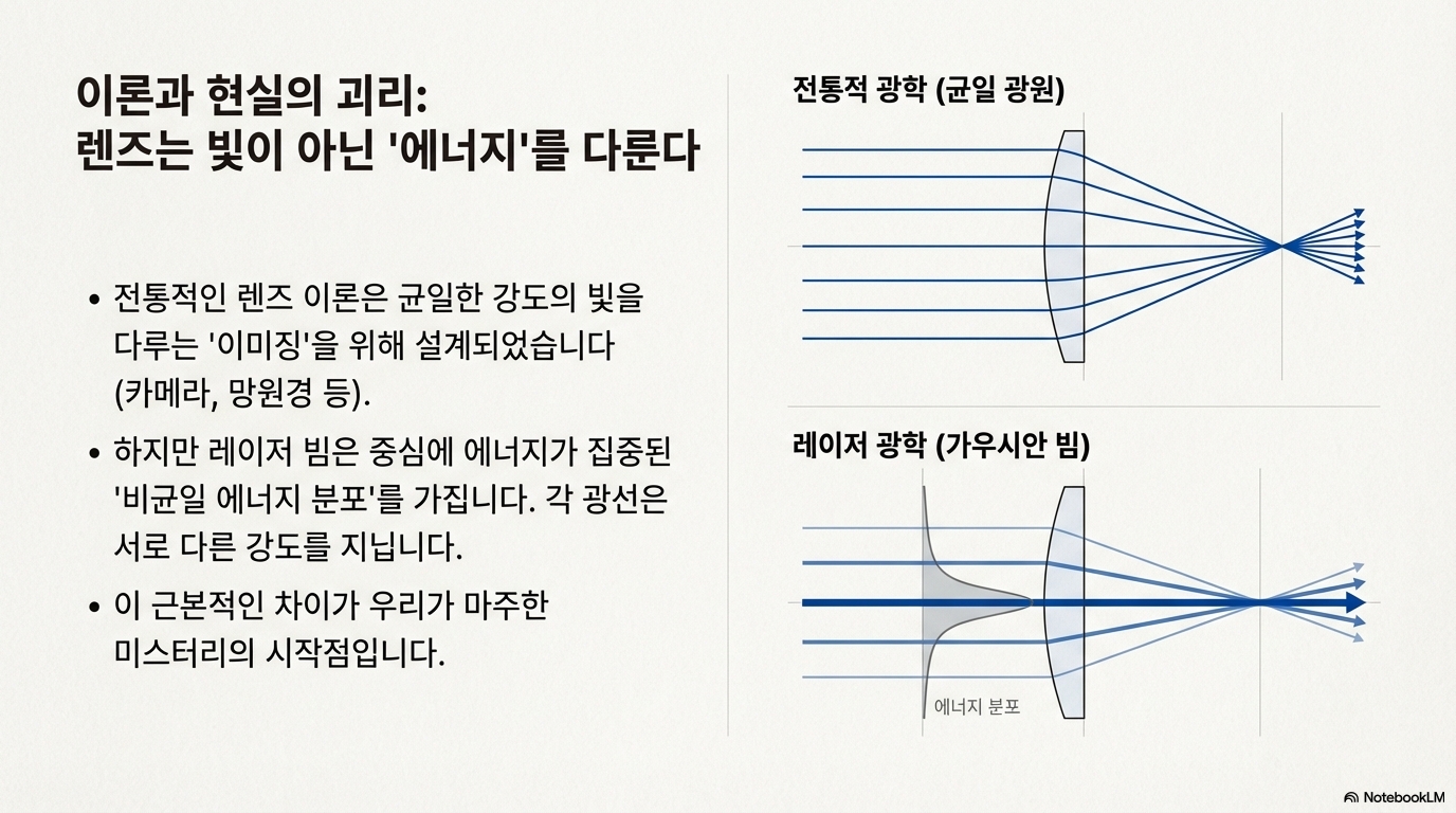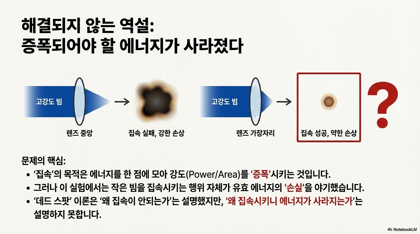이 가설은 왜 강력한 빔이 장초점 렌즈를 그냥 '통과'해 버렸는지를 설명하는 열쇠가 됩니다. 빔의 거의 모든 에너지가 굴절이 일어나지 않는 '죽은 지점'에 집중되었기 때문입니다.