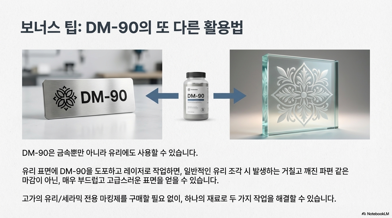 결과는 상상 이상이었습니다. 타우린은 실험에 사용된 그 어떤 재료보다도 선명하고 짙은 검은색 마킹을 만들어냈습니다. 하지만 실용성에는 큰 문제점이 있었습니다. 타우린은 너무 미세하고 가벼운 분말 형태라, 레이저 기기의 에어 어시스트(공기 분사) 바람에 쉽게 날아가 버려 표면에 고르게 도포하는 것 자체가 매우 어려웠습니다. 이 사례는 기존의 틀을 벗어난 사고가 놀라운 결과를 가져올 수 있지만, 그 가능성을 현실로 만들기 위해서는 실용적인 문제들을 해결해야 한다는 교훈을 줍니다.
