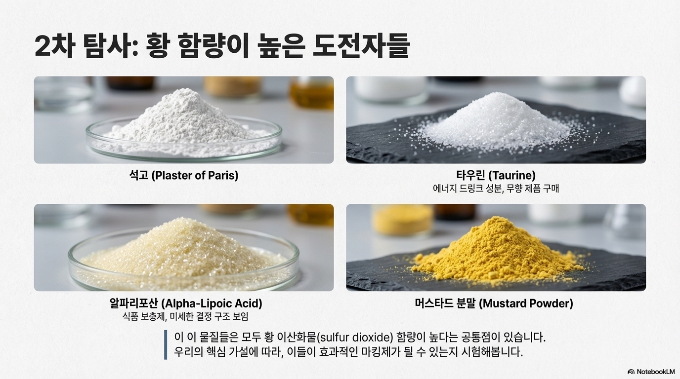 이번 여정은 간단한 화학적 지식과 고정관념을 깨는 실험 정신이 만났을 때, 값비싼 상용 제품을 뛰어넘는 놀라운 결과를 얻을 수 있다는 사실을 분명히 보여주었습니다. DM90이나 디젤 오일 같은 성공 사례도 있었지만, 끈적하고 불쾌한 냄새를 남긴 '알파리포산' 보충제나 긁으면 쉽게 벗겨지는 회색 자국만 남긴 '석고', 그리고 거의 효과가 없었던 '겨자 가루'와 같은 수많은 시행착오가 있었기에 더욱 의미 있는 발견이었습니다.