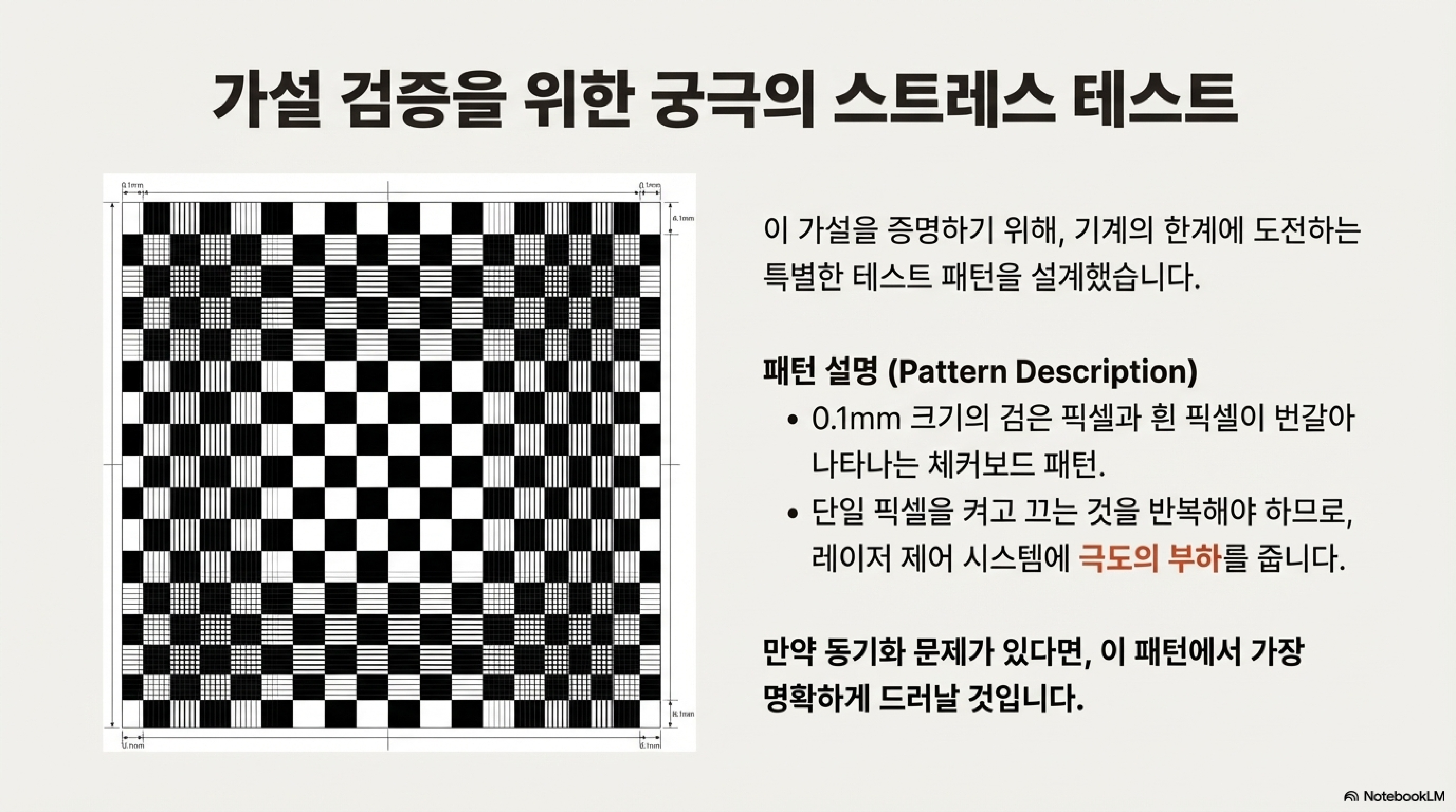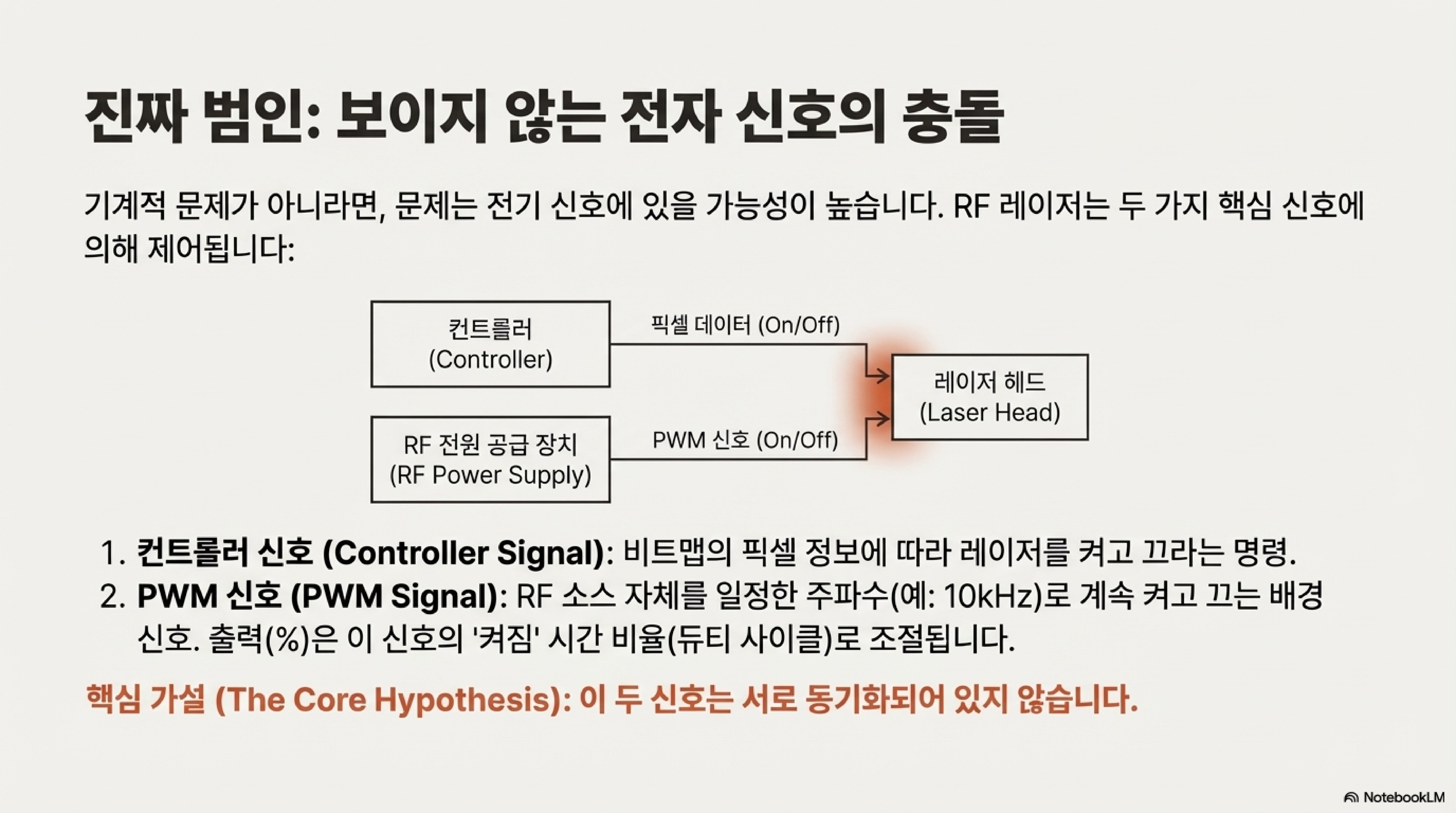 핵심 문제는 이렇습니다. PWM 신호는 픽셀 데이터와 상관없이 자유롭게 실행됩니다. 만약 레이저가 검은색 픽셀을 태우는 100 마이크로초(µs) 동안, 우연히 PWM의 'OFF' 주기가 끼어들면 어떻게 될까요? 이로 인해 해당 픽셀은 의도된 전체 노출 시간을 받지 못하게 됩니다.