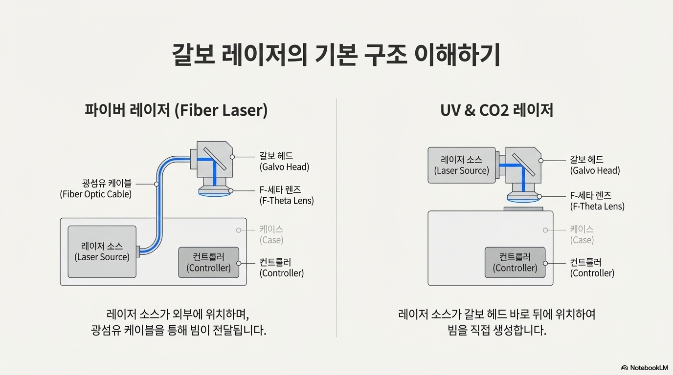 - 갈보 레이저: 레이저 헤드는 고정되어 있습니다. 그 대신 헤드 내부에 있는 아주 작고 가벼운 두 개의 거울이 상상조차 힘든 경이로운 속도로 정밀하게 움직이며 빔의 경로를 조종해 소재에 투사합니다. 움직여야 할 질량이 거의 없기 때문에 압도적인 속도가 가능한 것입니다.
