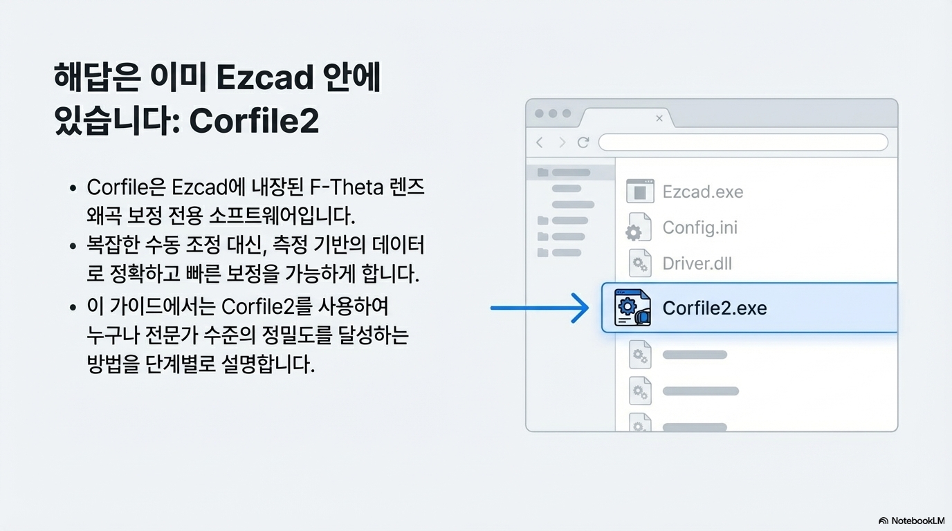Ezcad의 Corfile 2 기능은 단순히 숨겨진 기술적인 도구가 아닙니다. 그것은 복잡하고 좌절감을 주던 렌즈 왜곡 보정 작업을, 누구나 할 수 있는 정확하고 체계적인 프로세스로 바꿔주는 강력한 해결책입니다. 검정 마스킹 테이프라는 의외의 준비물부터 '중심선'이라는 간단한 측정 원리까지, 우리는 오늘 복잡함 속에 숨겨진 단순함의 힘을 확인했습니다.
