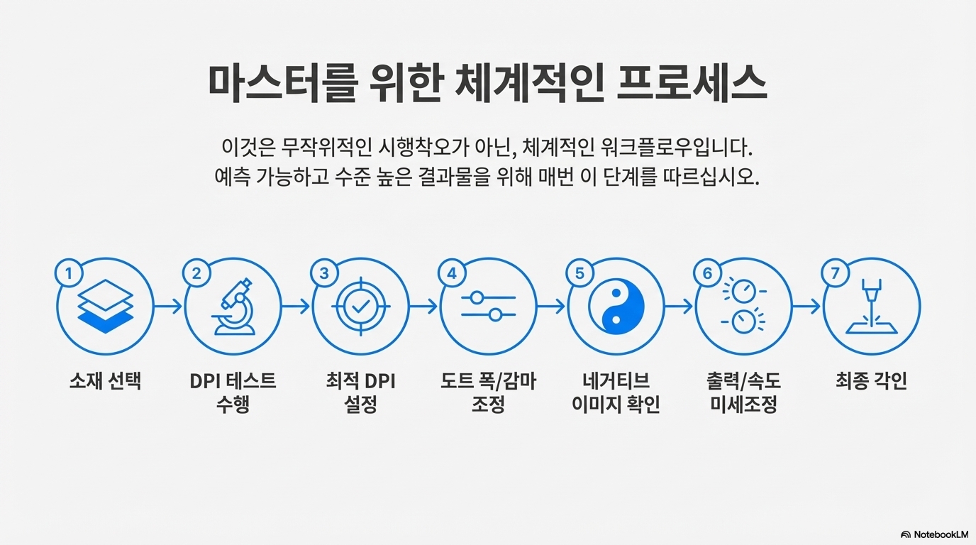 오늘 살펴본 DPI, 도트 폭 조정, 그리고 기본적인 선 품질과 같은 기술적인 디테일을 마스터하는 것이야말로, 좌절스러운 결과물을 전문가 수준의 작품으로 바꾸는 진정한 열쇠입니다. 레이저의 '디지털 설정'이 아닌 '물리적 실체'를 다룰 때, 비로소 그 잠재력을 100% 끌어낼 수 있습니다.
