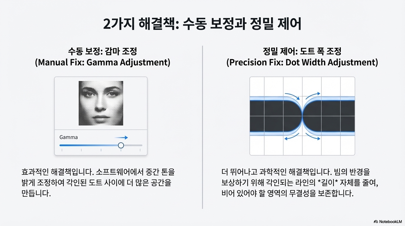 3. 완벽한 중간 톤의 비밀: 감마와 도트 폭 조정