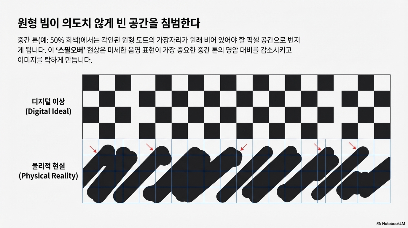 2. 동그란 빔, 네모난 픽셀: 중간 톤이 사라지는 이유