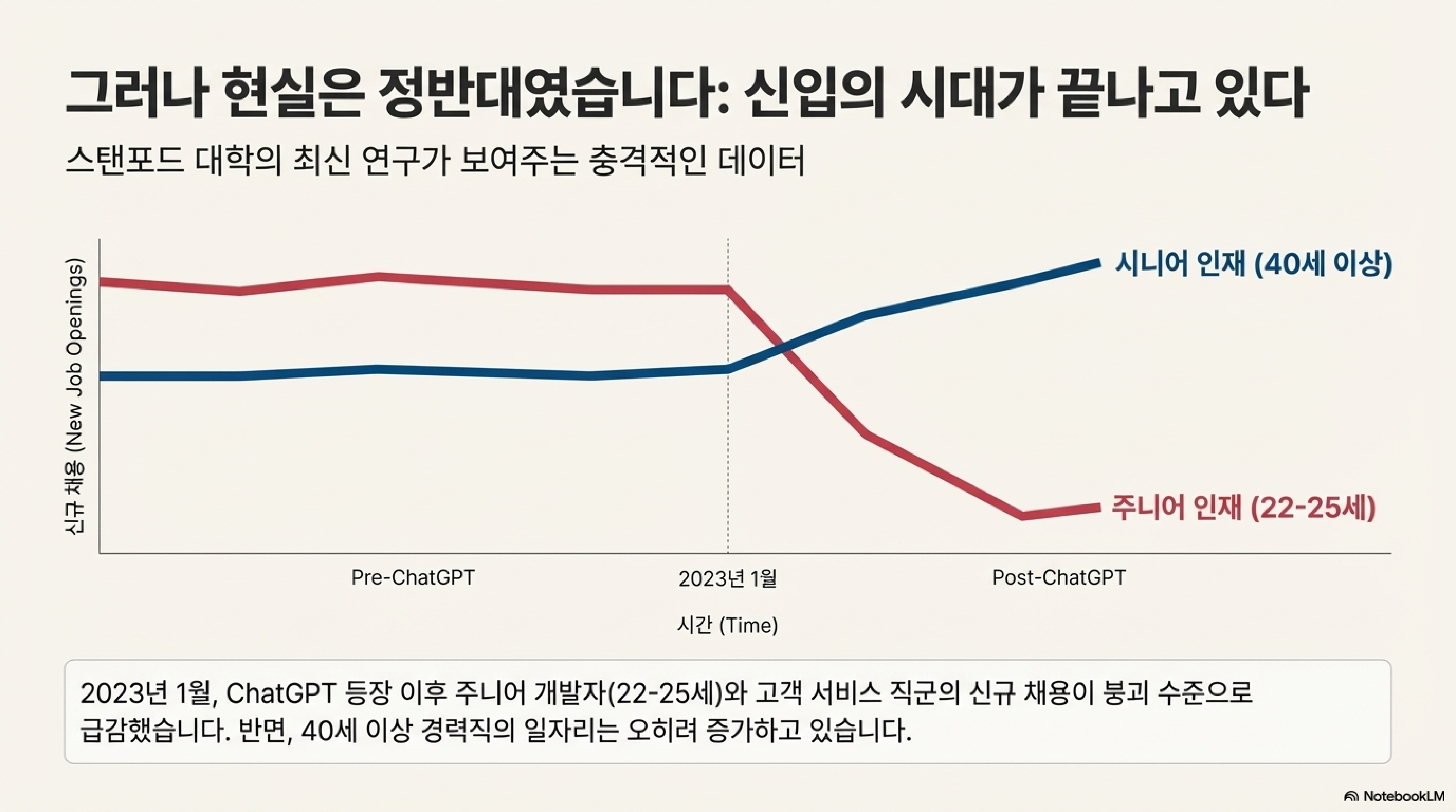 우리는 흔히 AI 시대의 첫 번째 직업적 피해자가 단순 반복 업무를 하는 노동자나 신기술에 어두운 중장년층일 것이라고 생각했습니다. 하지만 현실은 정반대였습니다.