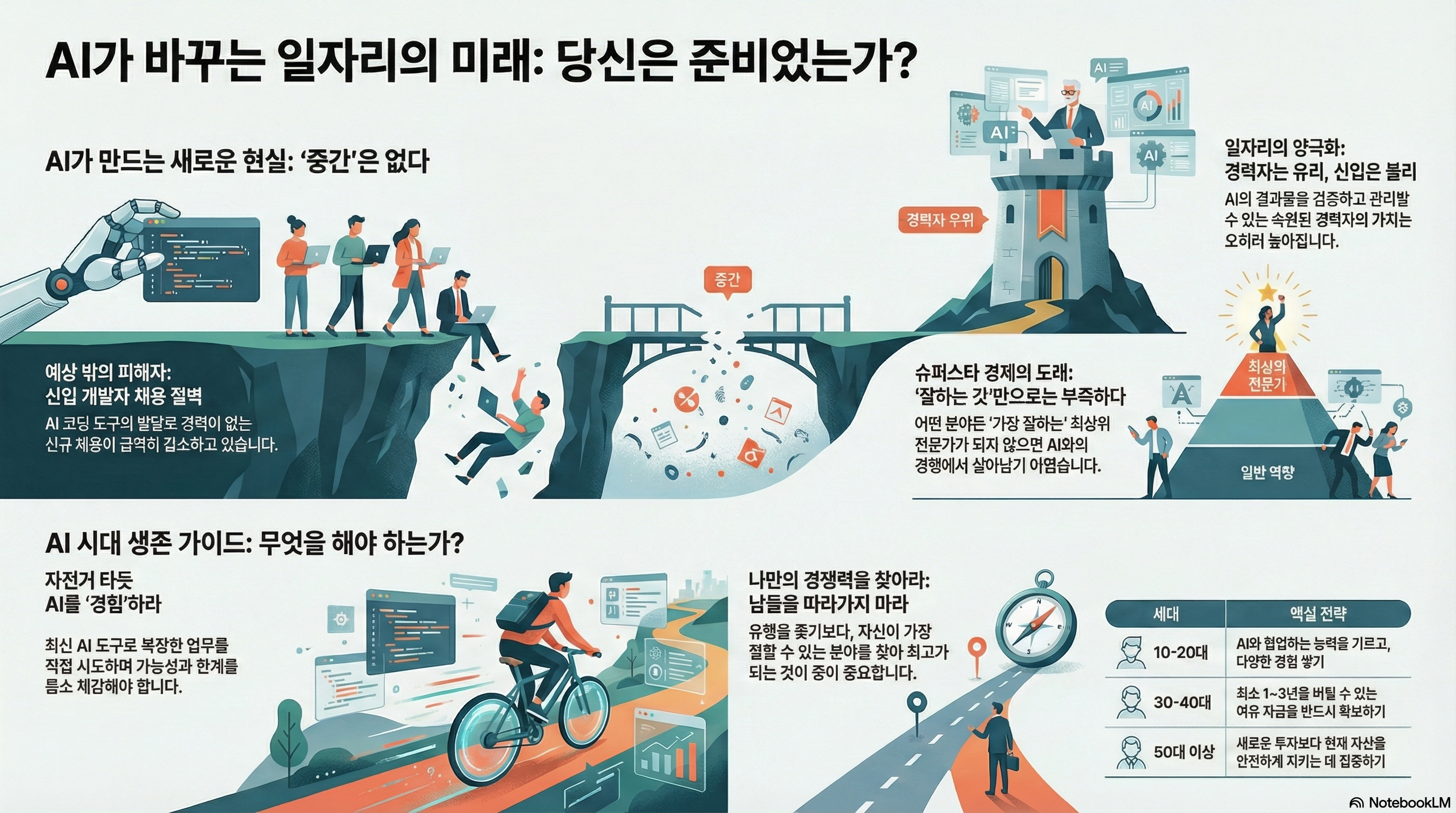 • '중간'은 AI에게 대체되고, **'슈퍼스타'**만이 살아남는다.