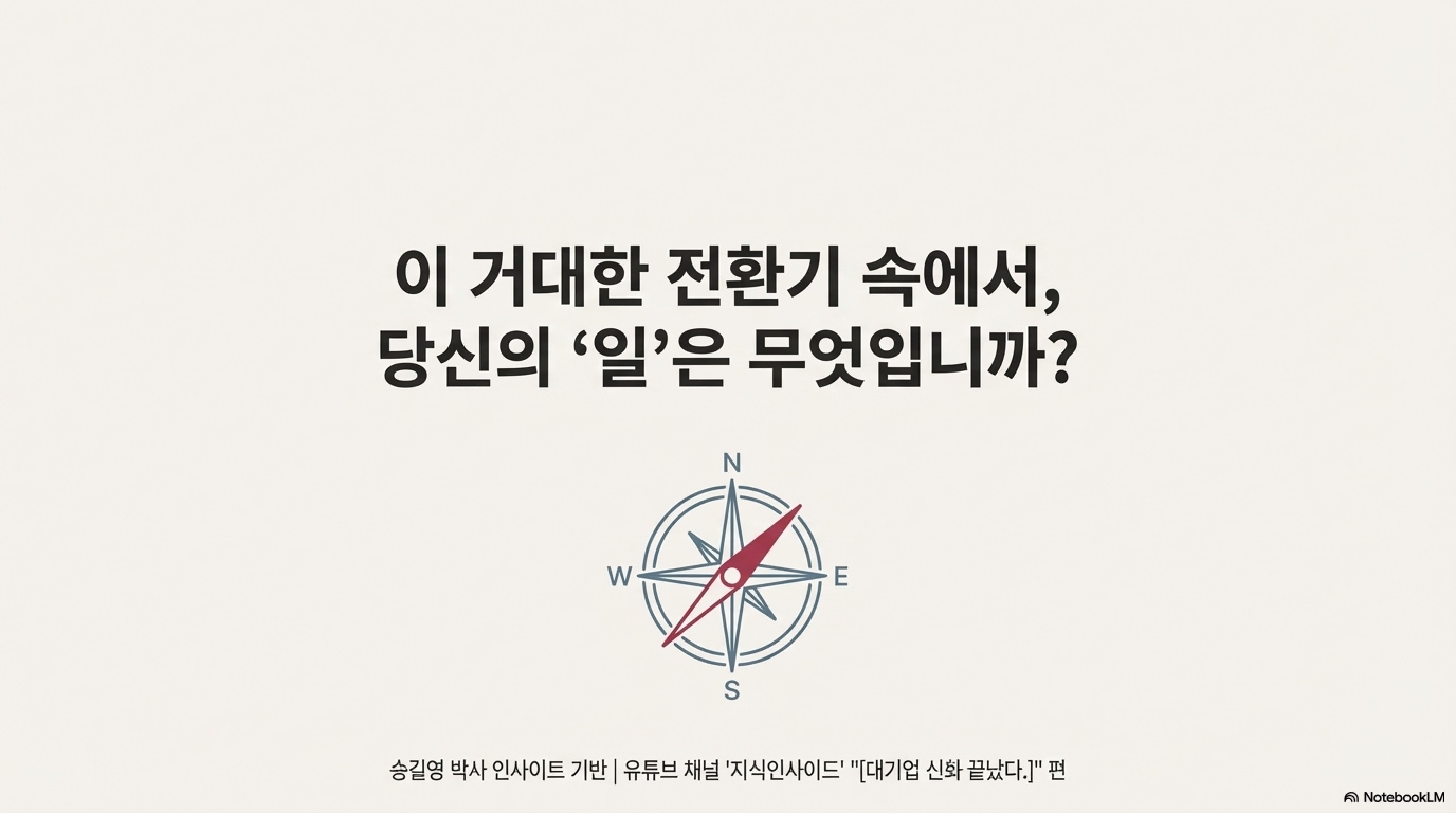 AI가 내 일자리를 빼앗지는 않을까? 지금 다니는 회사는 10년 뒤에도 안전할까? 많은 사람이 다가오는 미래에 대해 막연한 불안감을 느끼고 있습니다. 그런데 여기, 우리가 겪는 변화가 단순한 '예보' 수준이 아니라고 경고하는 목소리가 있습니다. 마인드 마이너 송길영 박사는 현재의 변화를 피할 수 없는 '특보'이자 거대한 '태풍'이라고 단언합니다.