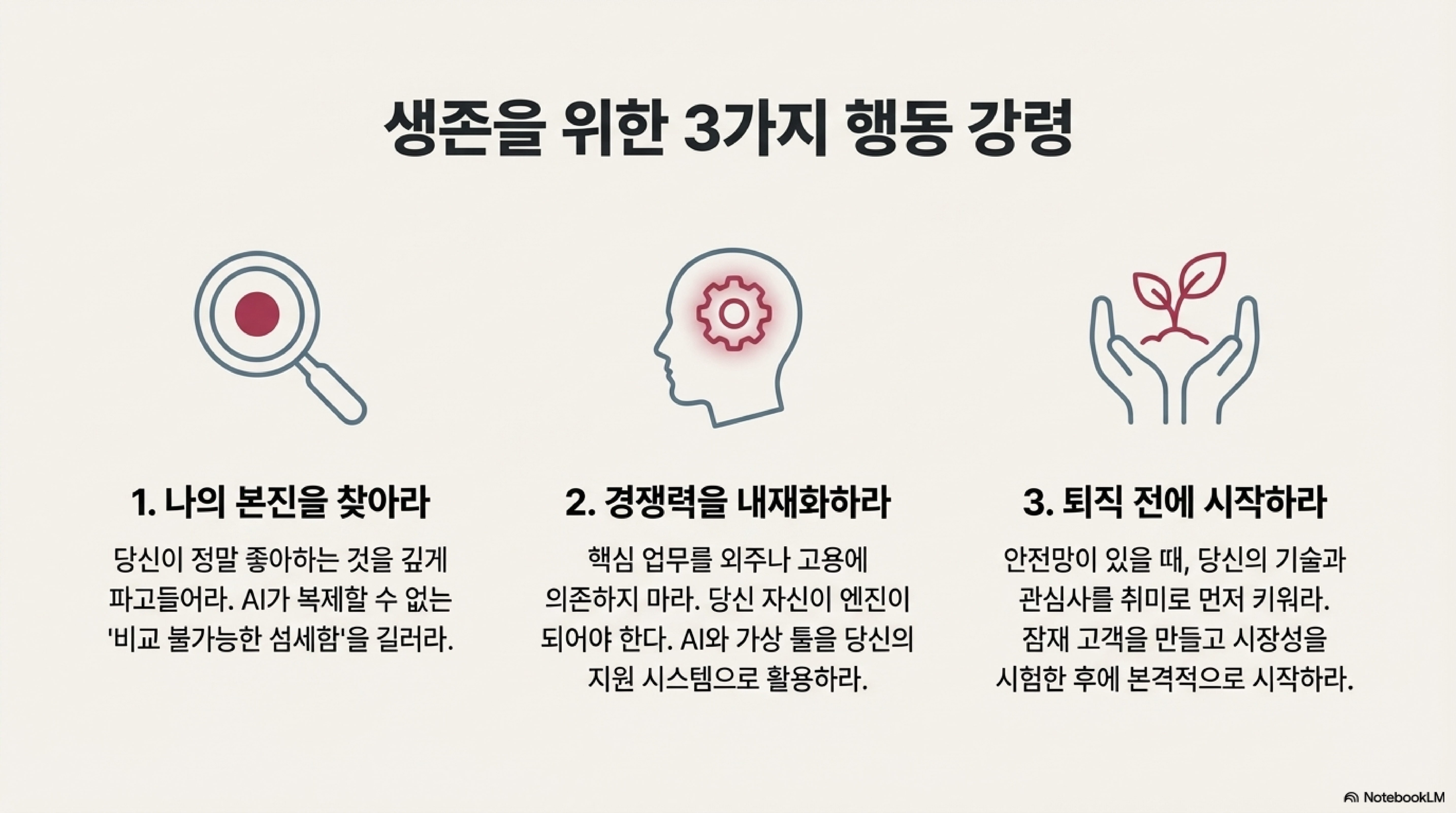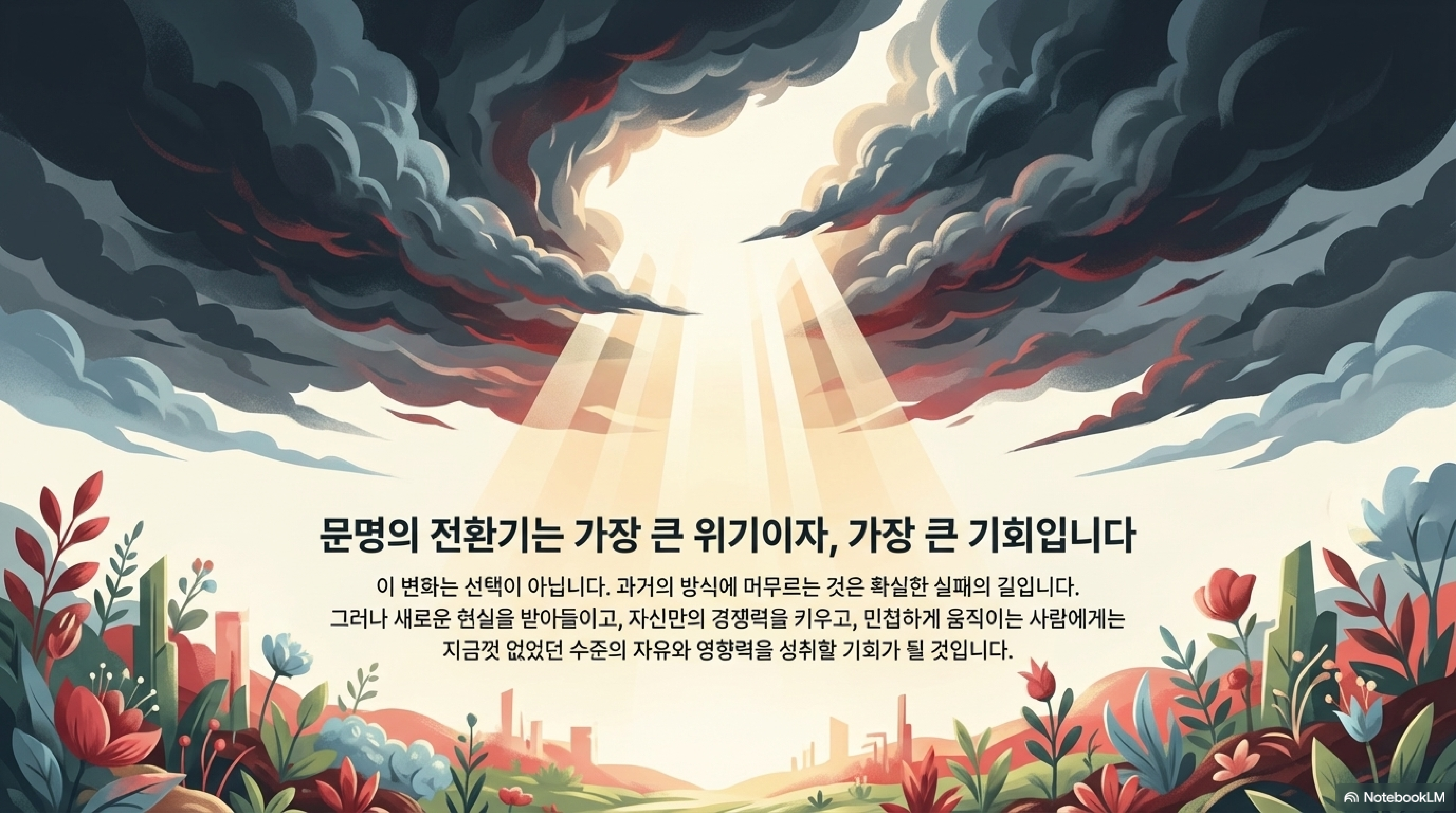 바로 이 여유가 우리에게 근본적인 질문을 던질 시간을 허락합니다. 이 격변의 시대는 기존의 방식을 고수하는 이들에게는 전례 없는 위기이지만, 변화의 본질을 꿰뚫어 보고 자신만의 길을 찾는 이들에게는 엄청난 기회가 될 수 있습니다.