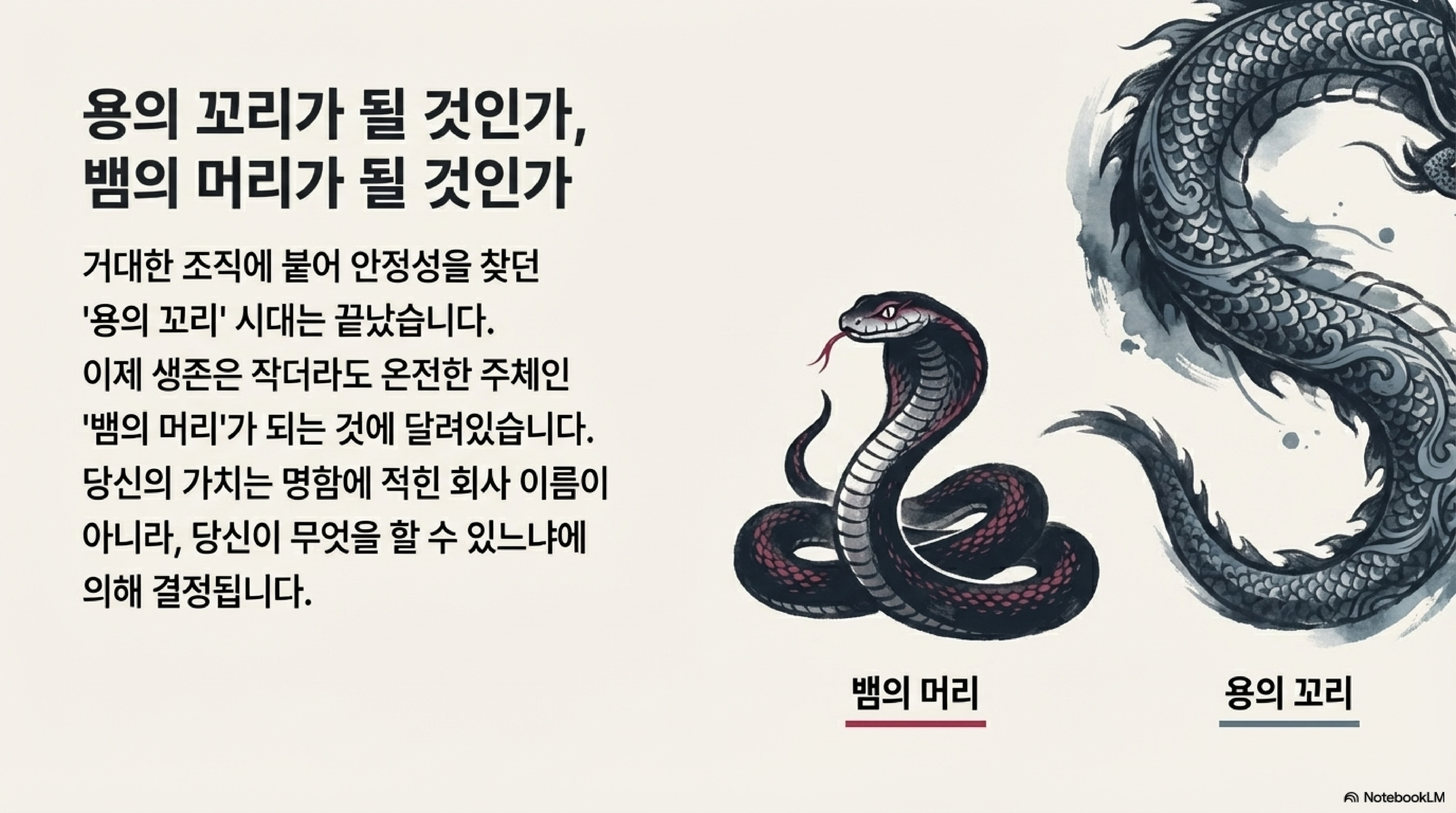 최근 국내 대기업의 임원급 인사가 모두가 선망하는 자리를 버리고 다른 회사의 '팀장'으로 이직한 사례는 이 변화의 본질을 명확히 보여줍니다. 그가 밝힌 이유는 단 한 문장이었습니다. "이 일이 하고 싶었다." 이제 개인의 가치는 조직의 이름이나 직급이 아닌, '어떤 일을 하는가'에 의해 정의됩니다. 이런 관점에서 퇴사는 실패가 아니라, 다음 단계로 나아가기 위한 커리어 관리의 자연스러운 과정이 되었습니다.