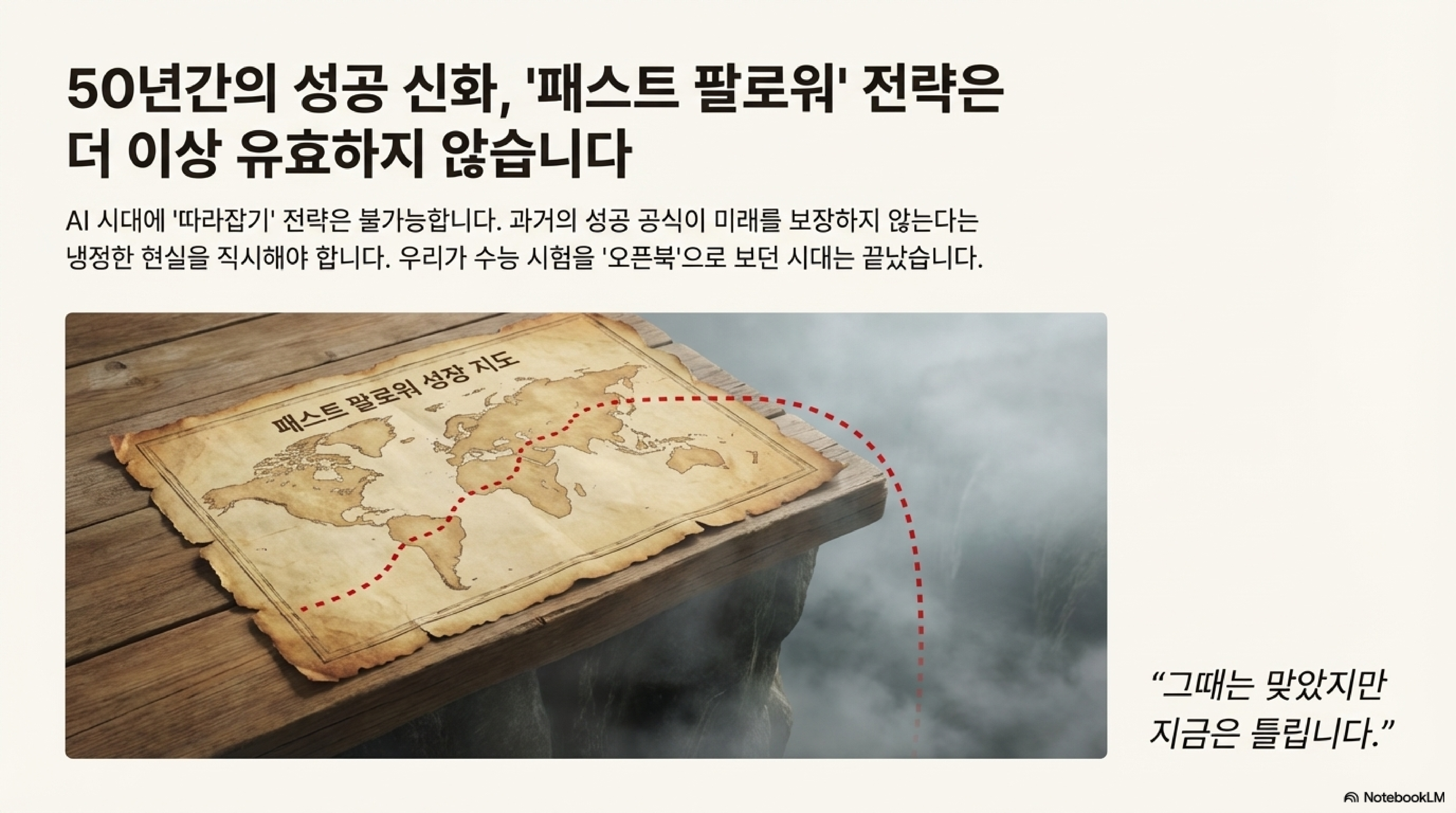대한민국 산업화의 성공 공식이었던 '패스트 팔로워(Fast Follower)' 전략은 AI 시대에 공식적으로 종말을 고했습니다.