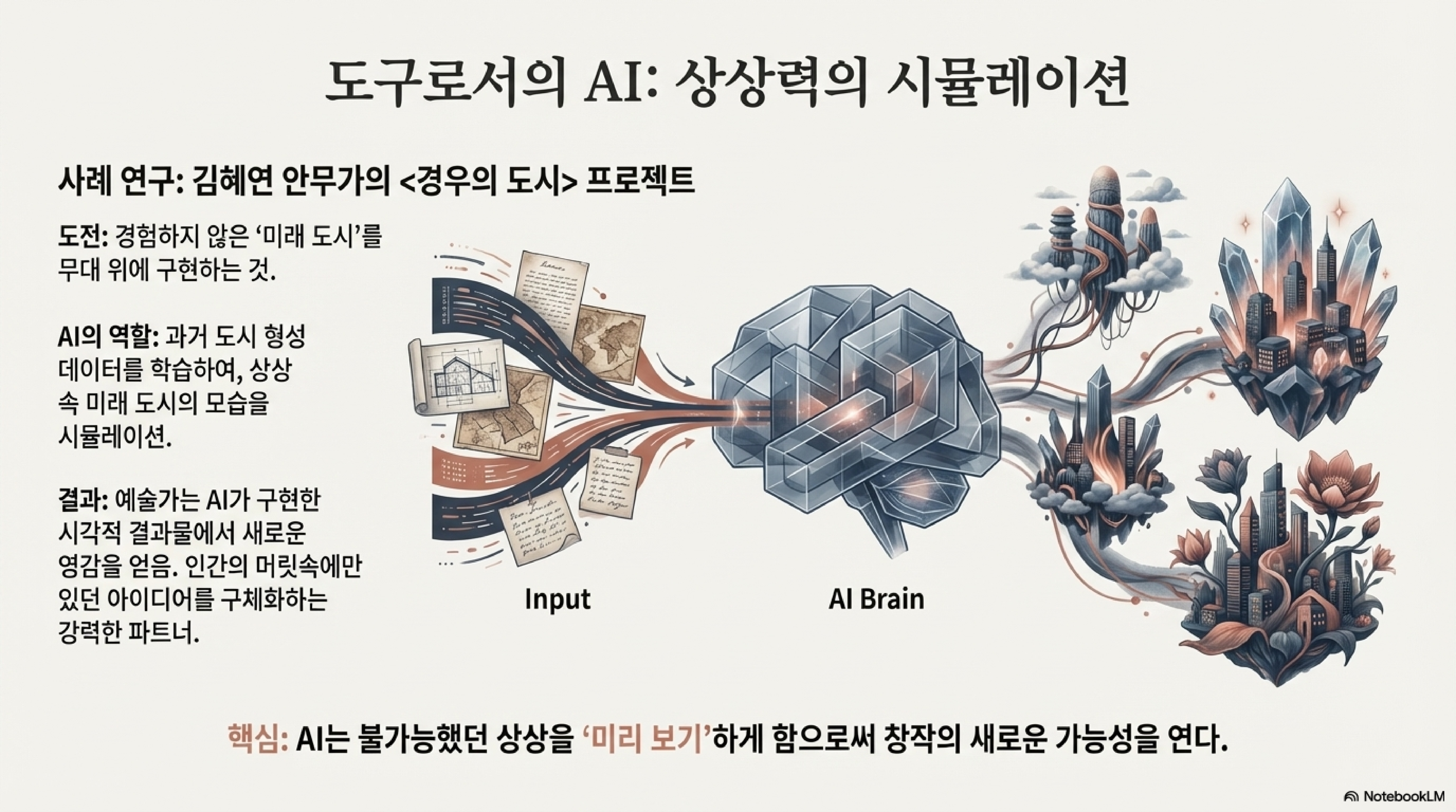 하지만 순수 예술의 세계는 다릅니다. 김혜연 안무가는 예술의 본질을 "세상에 없는 답", 즉 "나를 찾아가는 과정 자체의 즐거움"이라고 말합니다. 이는 지극히 비생산적이고 비효율적인 활동입니다. AI가 우리를 반복적인 노동에서 해방시켜 줄수록, 우리는 '나는 누구인가'라는 존재론적 질문에 더 많은 시간을 쏟게 될 것입니다. 그리고 그 답을 찾는 비효율적인 과정, 즉 순수 예술에 대한 갈증은 더욱 커질 것입니다.