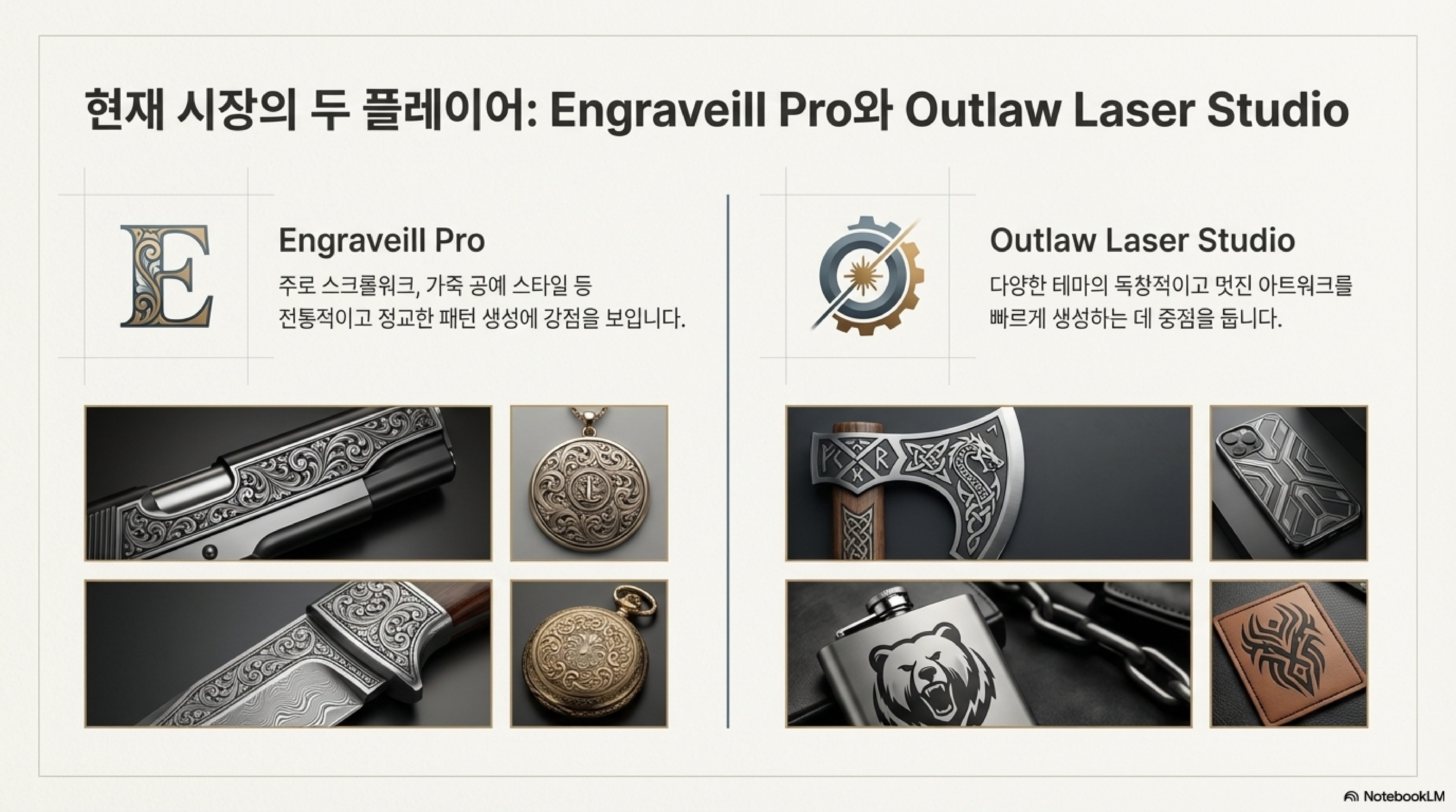 레이저 각인이나 CNC 작업을 하는 창작자라면 누구나 한 번쯤 정교하고 복잡한 그래픽 디자인 앞에서 막막함을 느껴본 적이 있을 겁니다. 아름다운 스크롤 워크나 패턴을 칼날, 권총 손잡이, 가죽 지갑에 새기고 싶지만, 전문적인 디자인 기술이 없어 아이디어를 실현하지 못하는 경우는 흔한 일이죠. 이런 창작의 장벽은 많은 메이커들에게 큰 아쉬움으로 남았습니다.