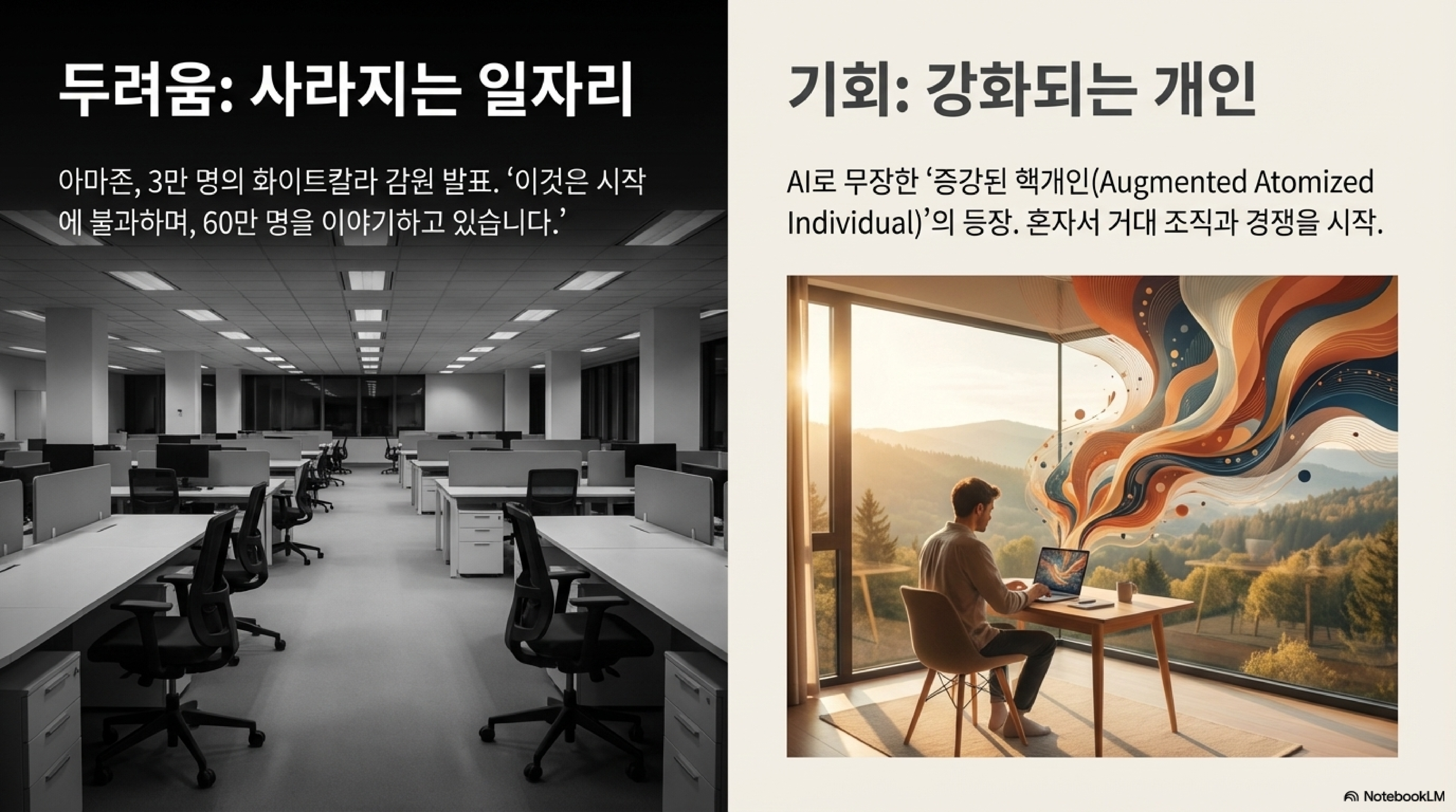 "AI가 내 일자리를 빼앗을까?", "그래서 앞으로 어떻게 살아야 할까?" 인공지능(AI)의 시대, 막연한 불안감과 호기심이 뒤섞인 질문을 한 번쯤 던져본 적이 있을 겁니다. 거대한 변화의 파도 앞에서 우리는 무엇을 준비해야 할까요?