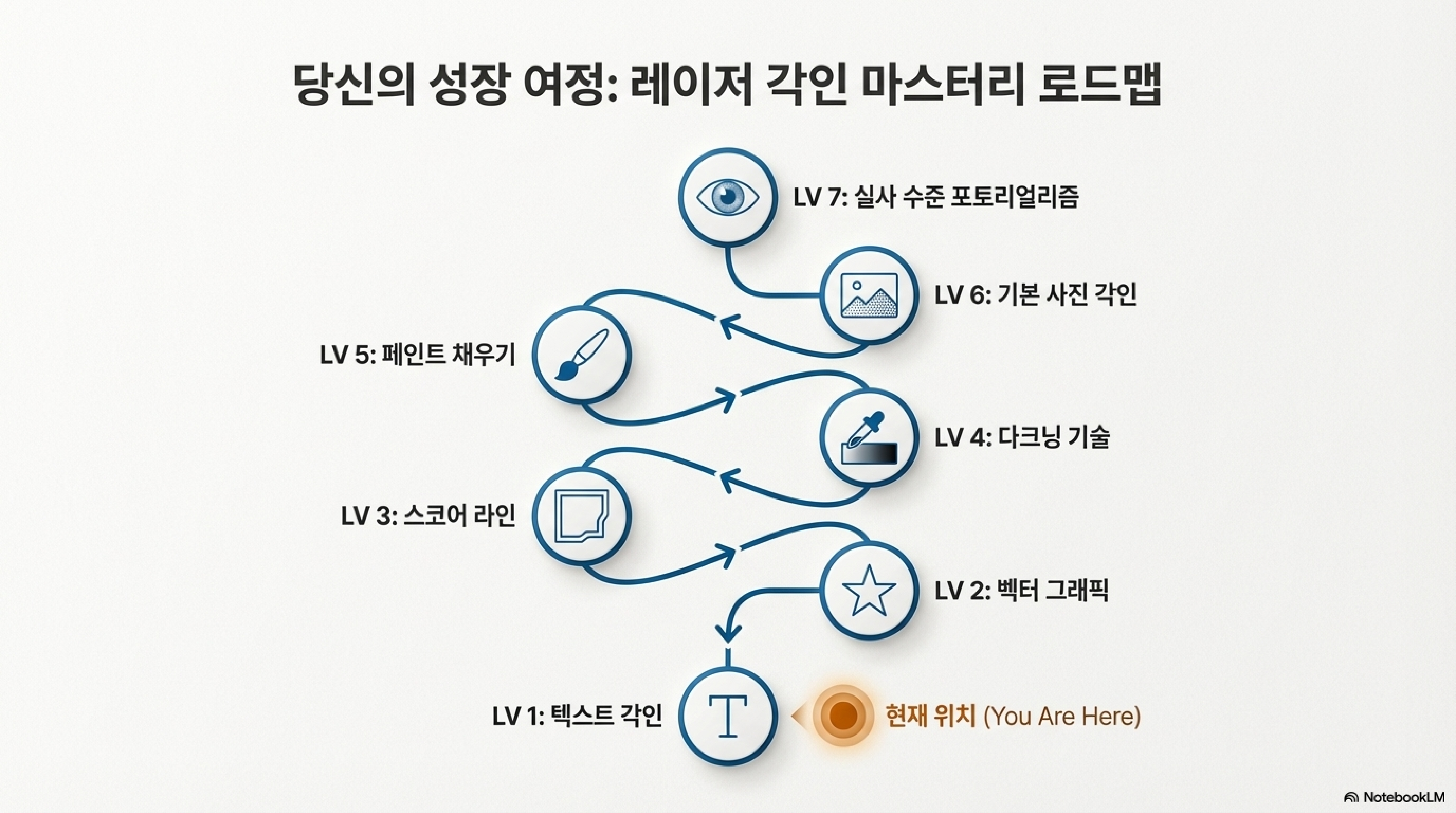 대부분의 사용자는 텍스트(Level 1)나 간단한 벡터 그래픽(Level 2) 각인에서 시작합니다. 물론 이것만으로도 훌륭한 작품을 만들 수 있지만, 거기서 멈출 필요는 없습니다. 이 글에서는 그 단계를 넘어 당신의 작품을 진정으로 돋보이게 만들 몇 가지 핵심적인 '레벨 업' 비법을 소개합니다. 단 하나의 새로운 기술을 추가하는 것만으로도 당신의 작품은 눈에 띄게 달라질 수 있습니다.