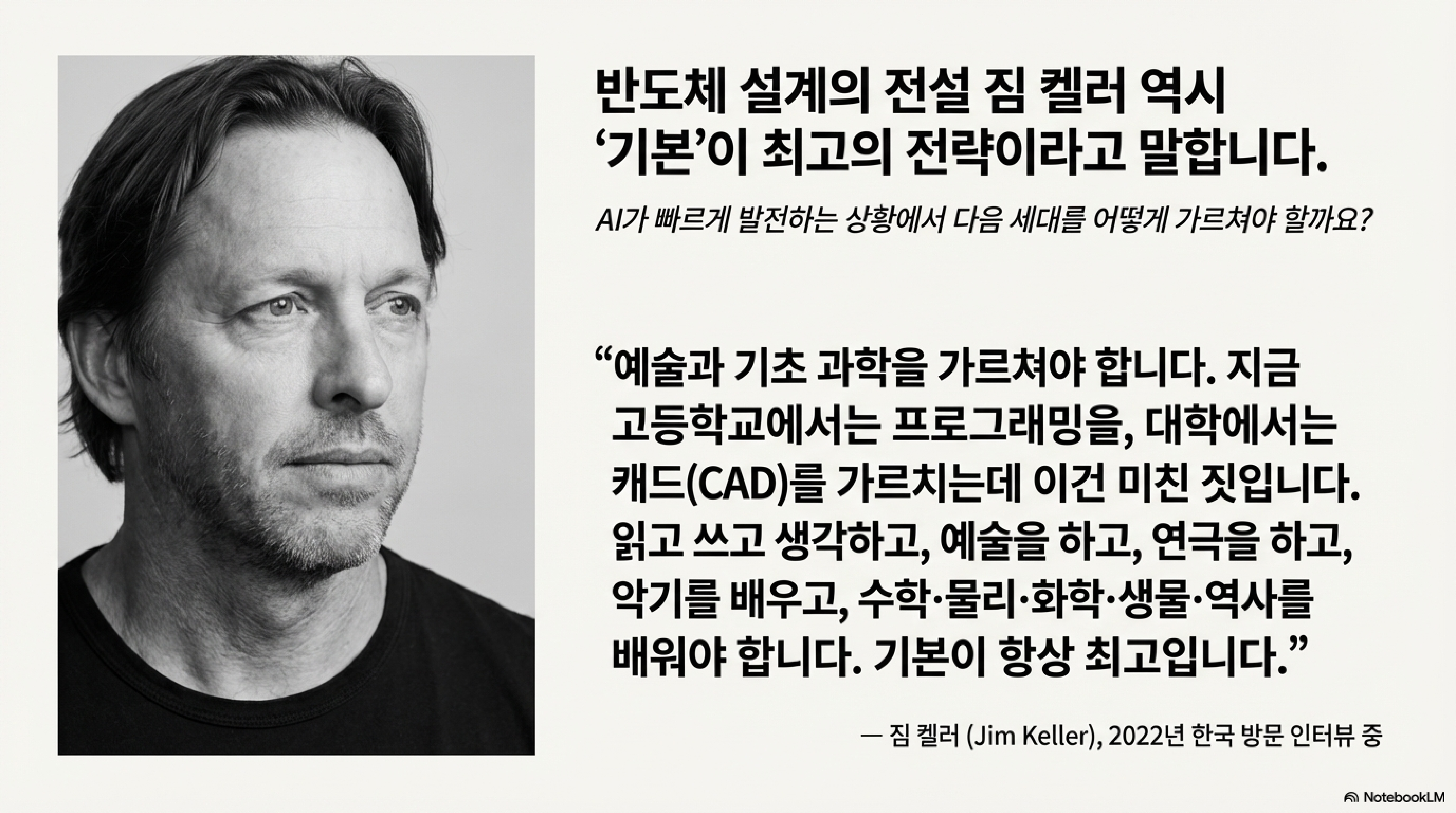 전설적인 반도체 설계자 짐 켈러 역시 이러한 기본의 중요성을 강력하게 역설합니다.