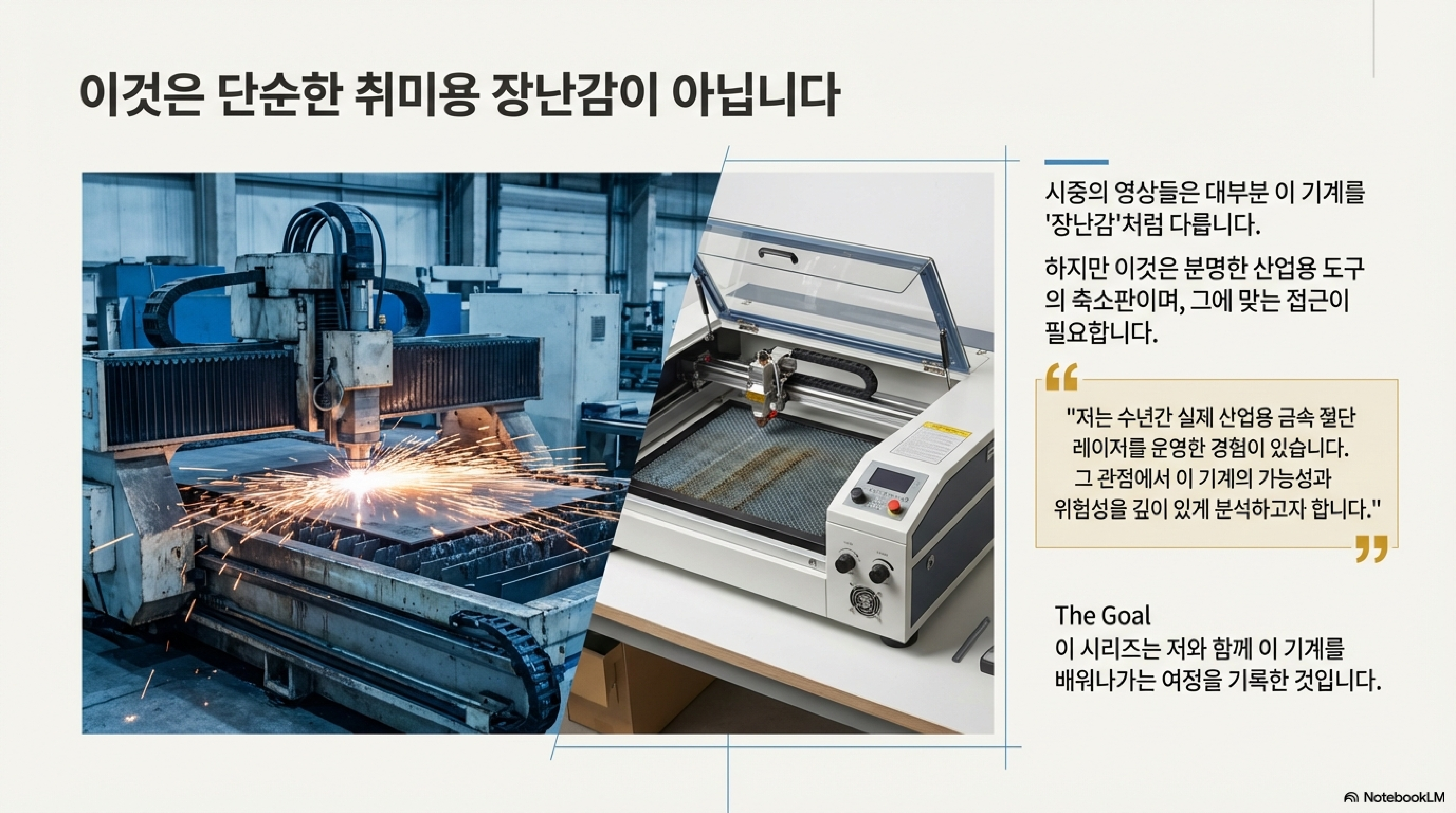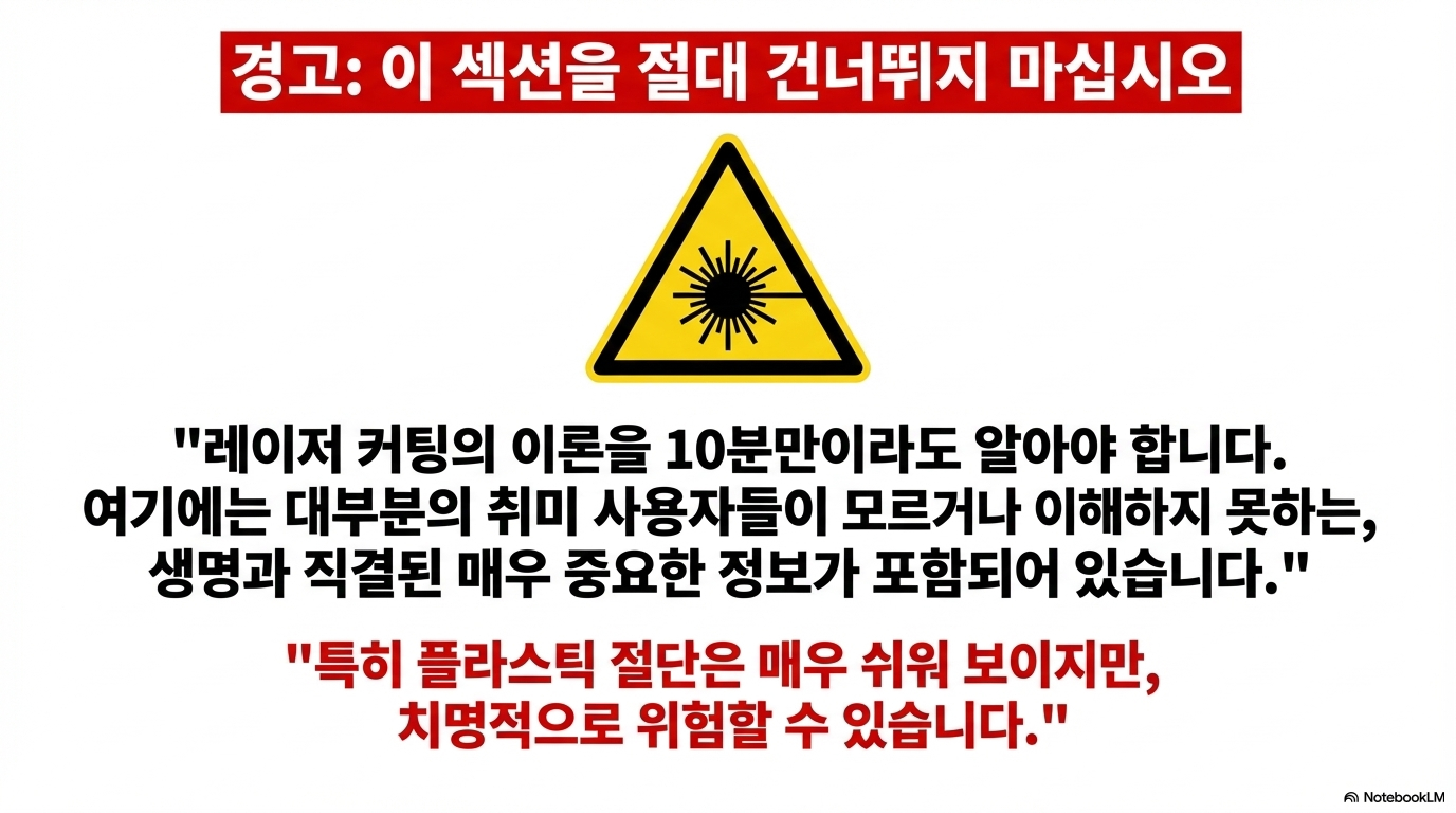이 모든 사실 중 가장 중요한 메시지는 실제 산업용 금속 절단 레이저 사업체를 운영했던 전문가의 입에서 나왔기에 더욱 무게가 실립니다. 이 유튜버는 이 기계의 잠재적 위험성을 매우 심각하게 경고합니다. 그는 온라인의 다른 리뷰 영상들을 보며 느꼈던 우려를 다음과 같이 표현합니다.