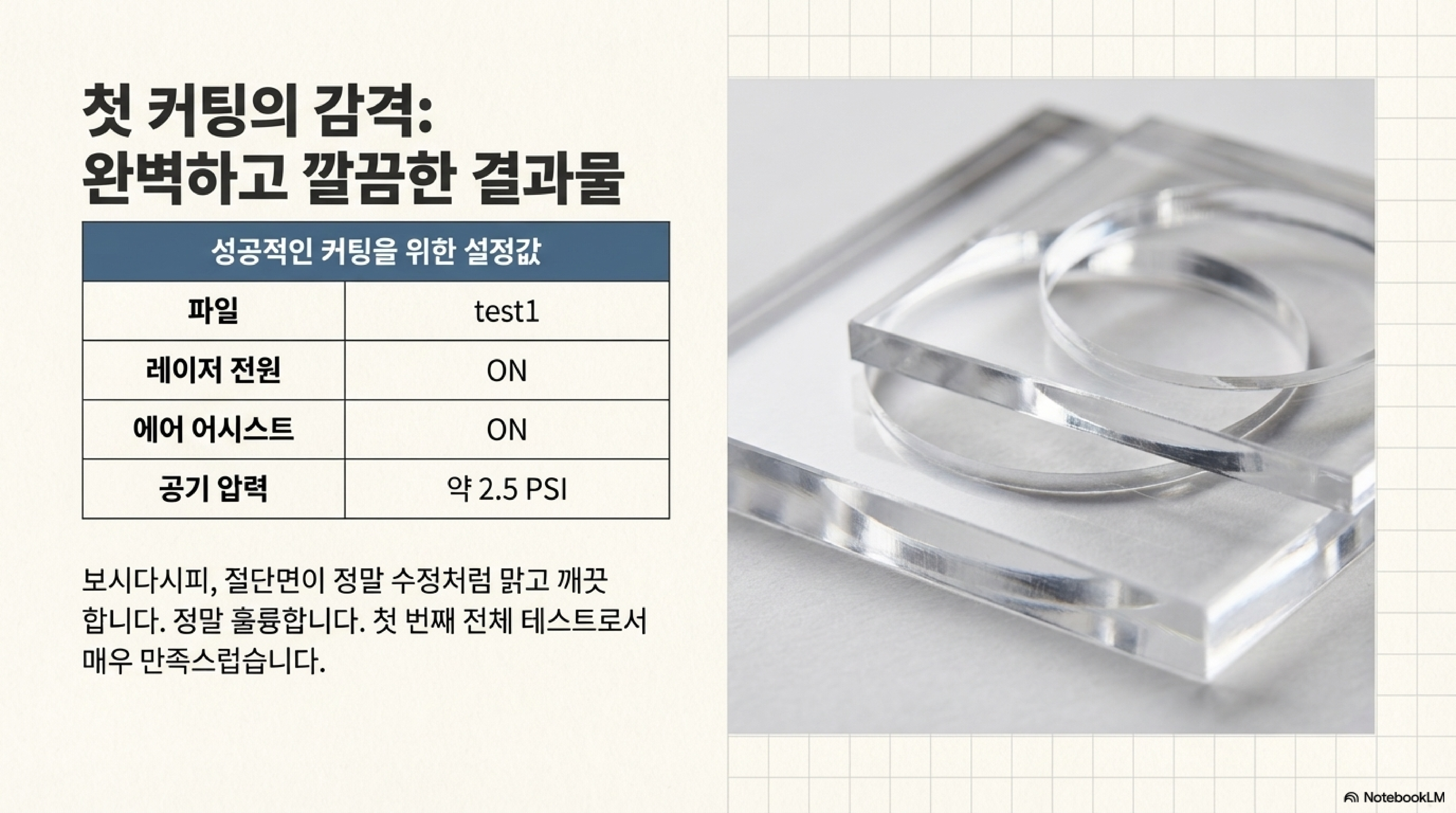 새로운 장비를 다룰 때 가장 큰 두려움 중 하나는 값비싼 재료를 망치는 것입니다. 이 문제를 해결하기 위한 현명한 접근법은 바로 '가상 실행'이었습니다. 레이저를 켜지 않은 상태에서 프로그램을 먼저 실행해 보는 것입니다. 이렇게 하면 재료 손실 없이 커터의 이동 경로를 눈으로 직접 확인하며 잠재적인 실수를 미리 파악할 수 있습니다.